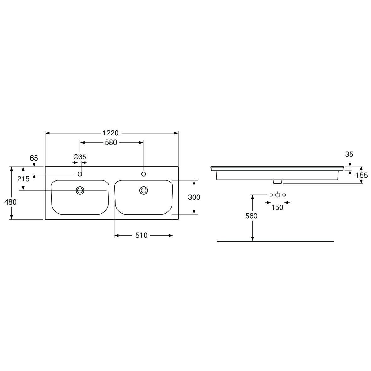 Storlek: 1220x480mm (BxD)