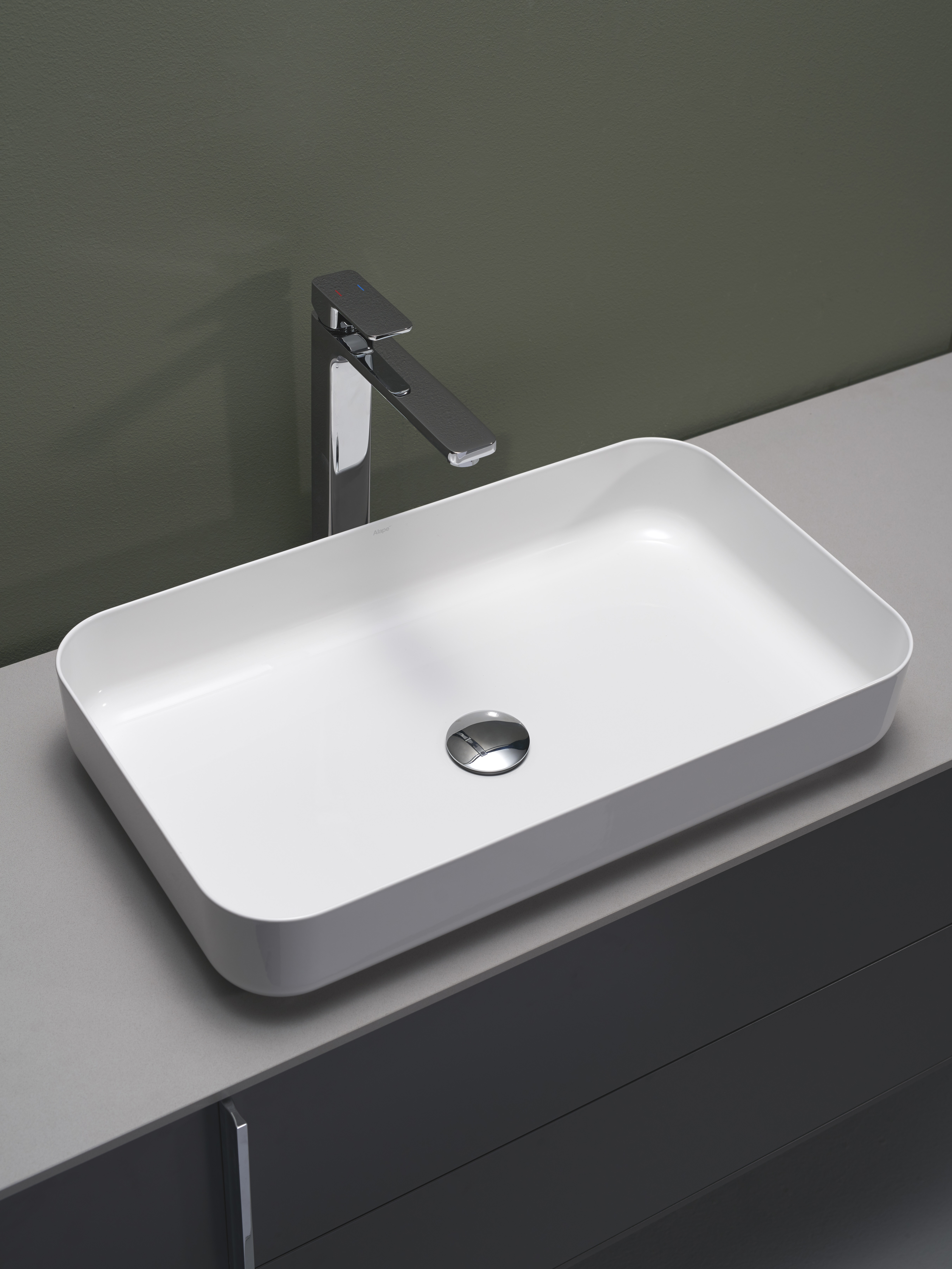 Fristående handfat i glaserat stål. Passar möbel med bänkskiva 800 och uppåt.