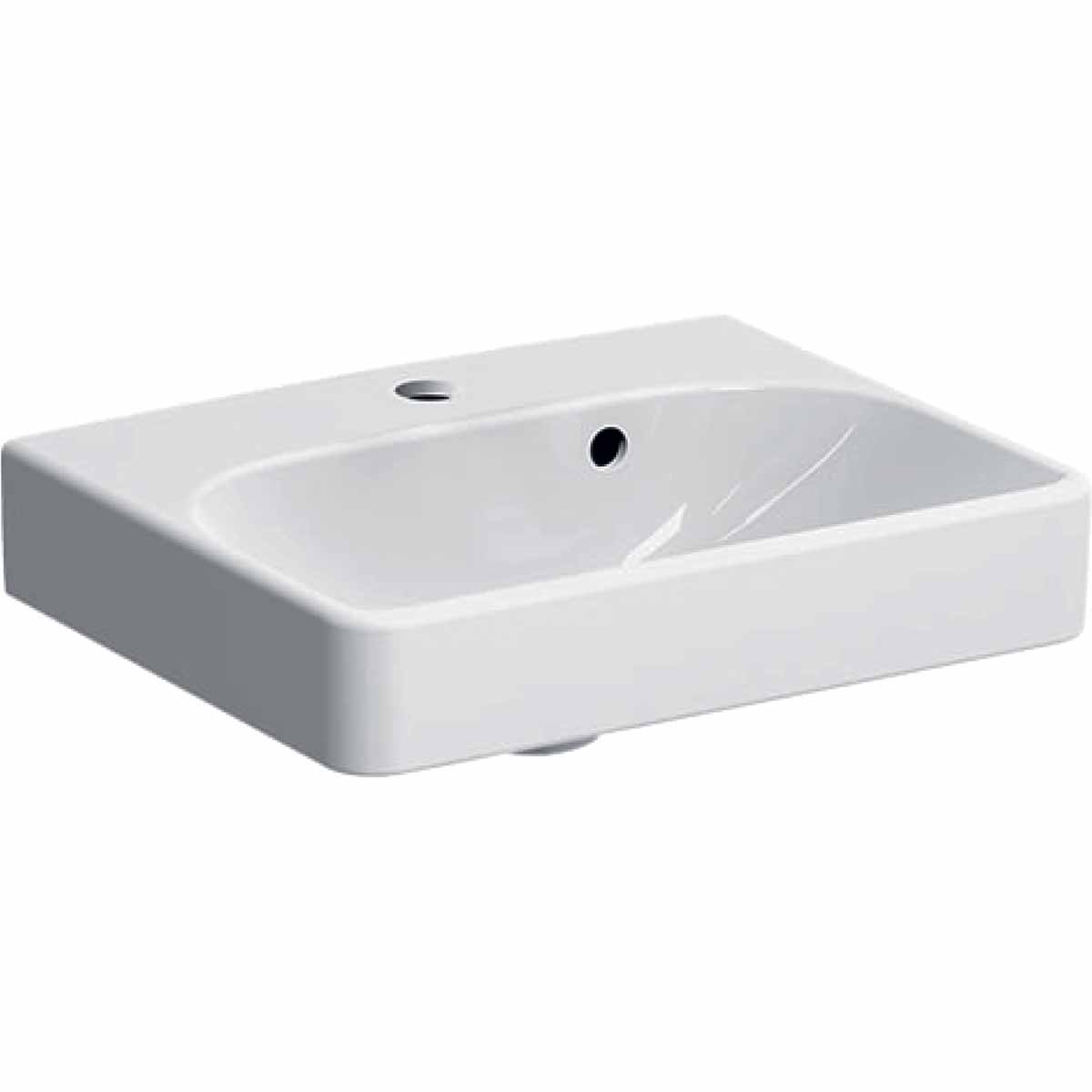 Geberit Smyle Square handfat med asymmetrisk överfyllnad: B=45cm, T=36cm, Kranhål=Mitten, Överfyllnad=Synlig, Vit