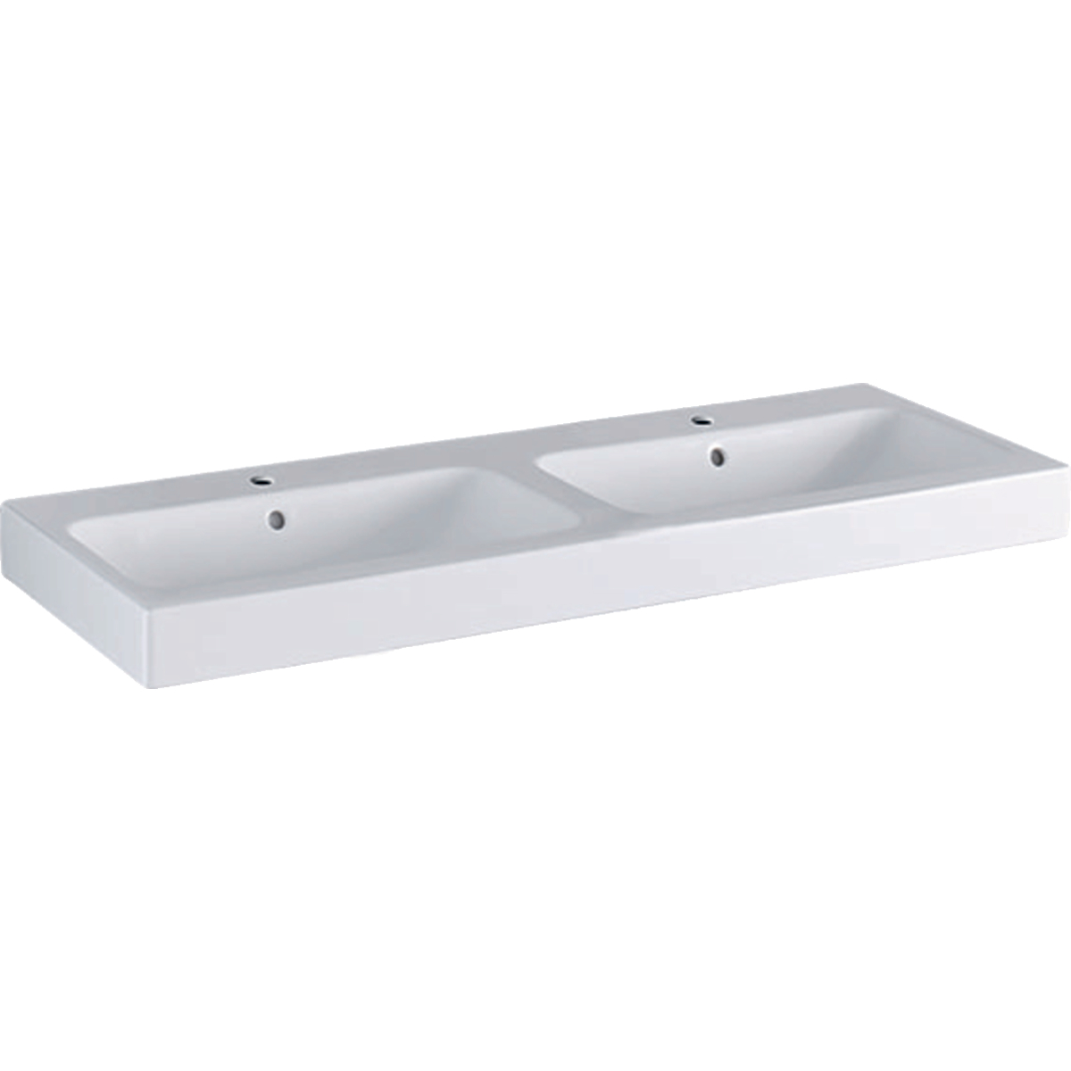 Geberit iCon dubbeltvättställ: B=120cm, T=48.5cm, Kranhål=Mitten, Överfyllnad=Synlig, Vit / KeraTect
