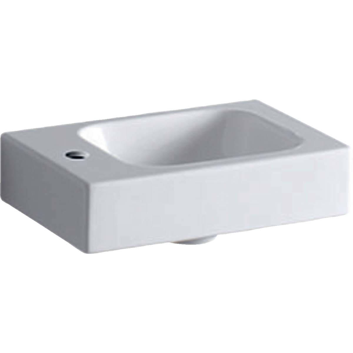 Geberit iCon handfat: Vit / KeraTect, B=38cm, H=13.5cm, T=28cm, Kranhål=Vänster, Överfyllnad=Utan