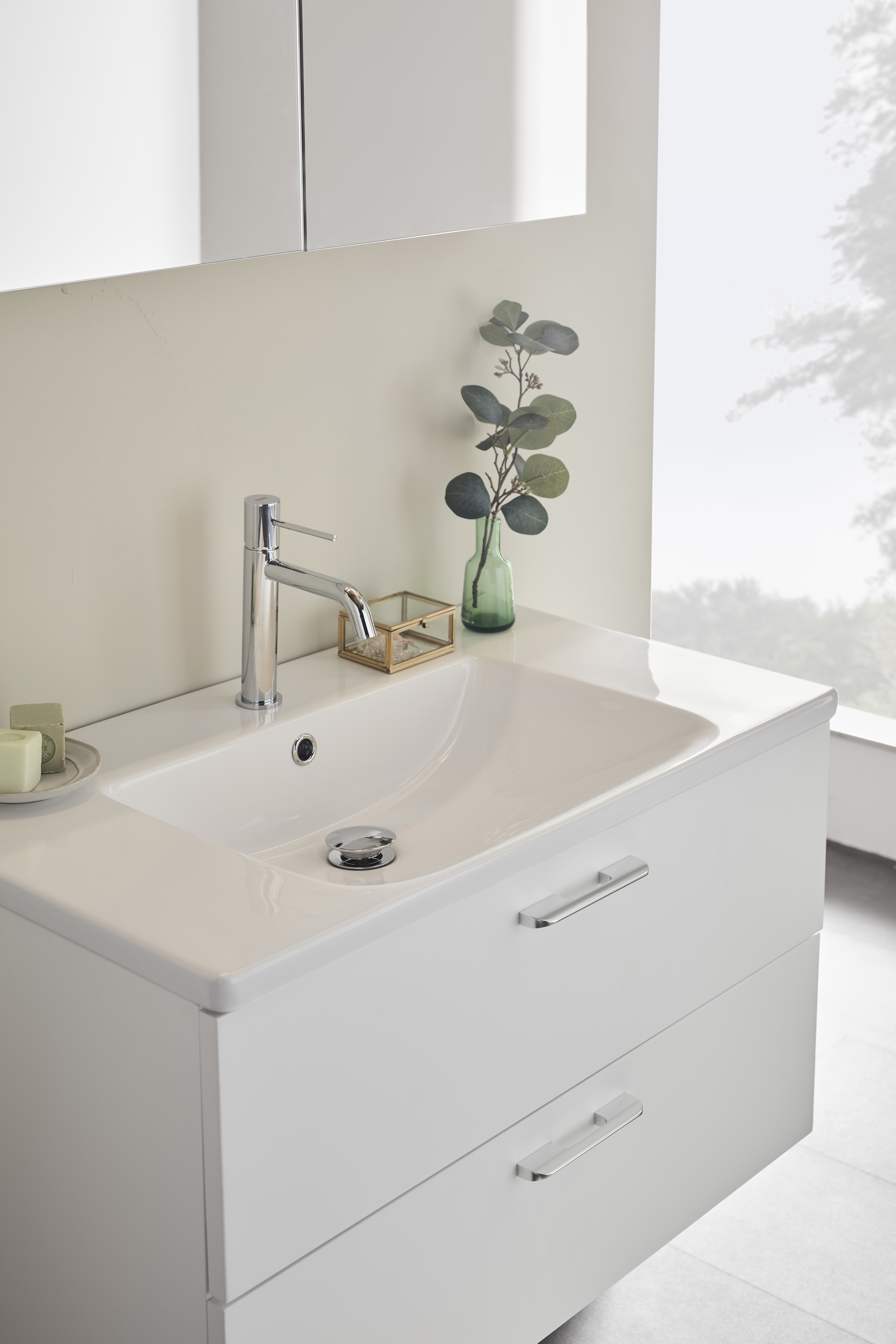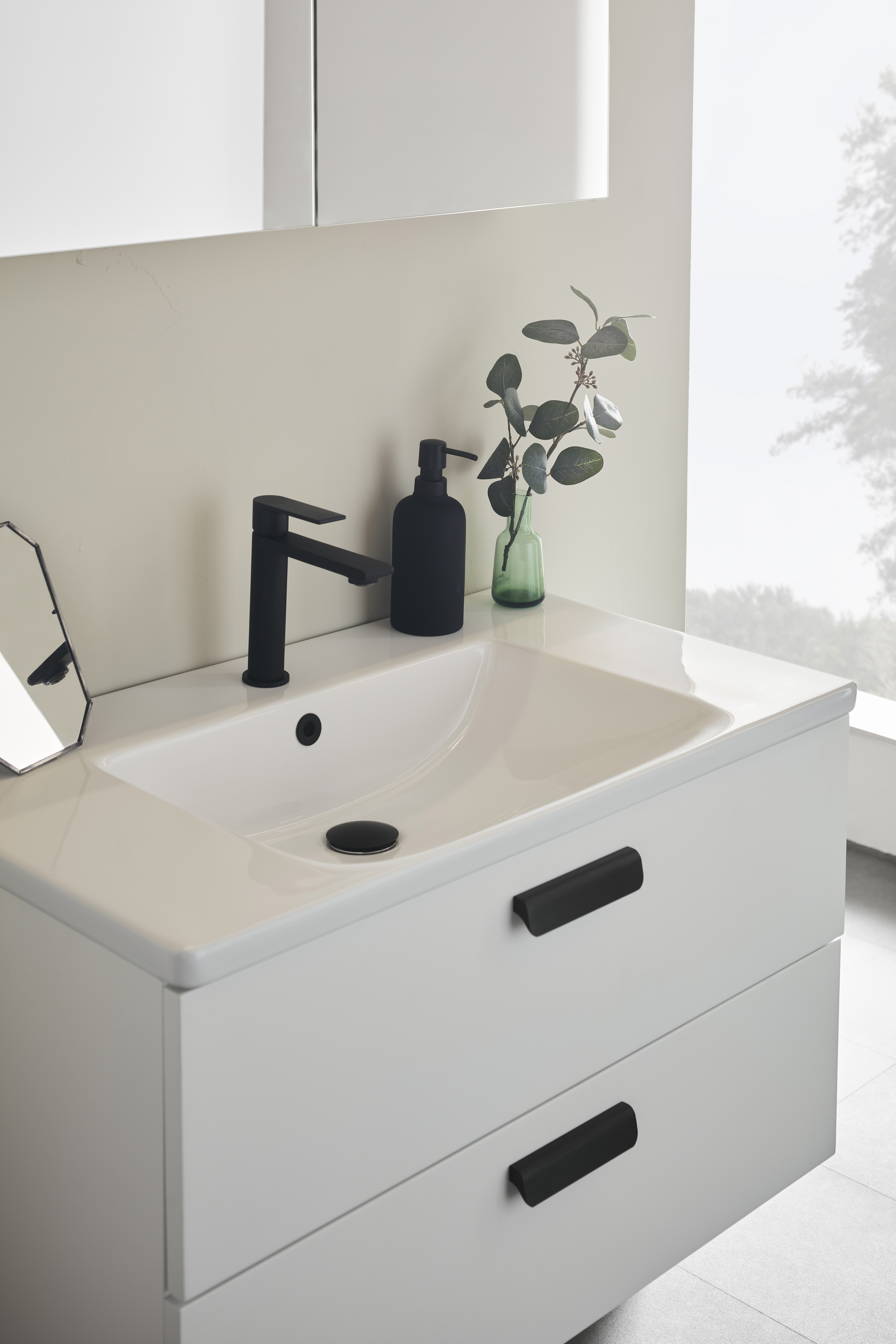 Nedsänkt tvättställ i porslin med breda avställningsytor och en stor ho i mjukt rundad form med överfyllnadsskydd. Passar Neo tvättställskåp.