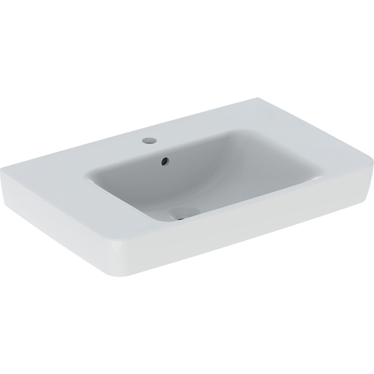 Geberit Renova Plan lay-on tvättställ med shelf surface: B=75cm, T=48cm, Kranhål=Mitten, Överfyllnad=Synlig, Avställningsyta=På bägge sidor, Vit / KeraTect