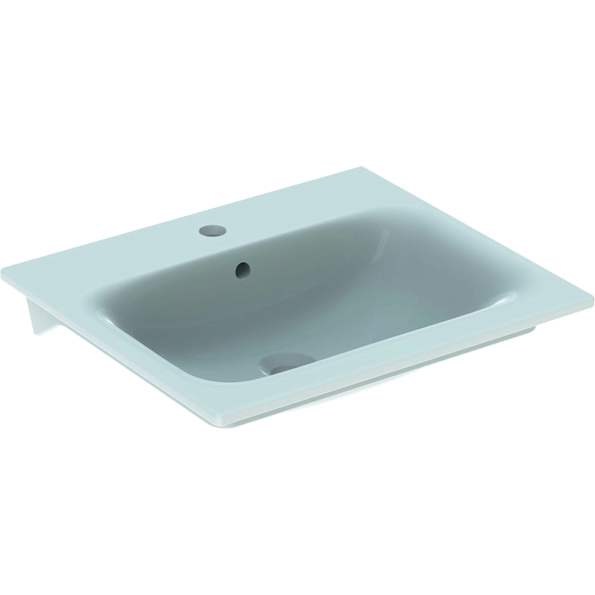 Geberit Renova Plan tvättställ: B=55cm, T=48cm, Kranhål=Mitten, Överfyllnad=Synlig, Vit / KeraTect