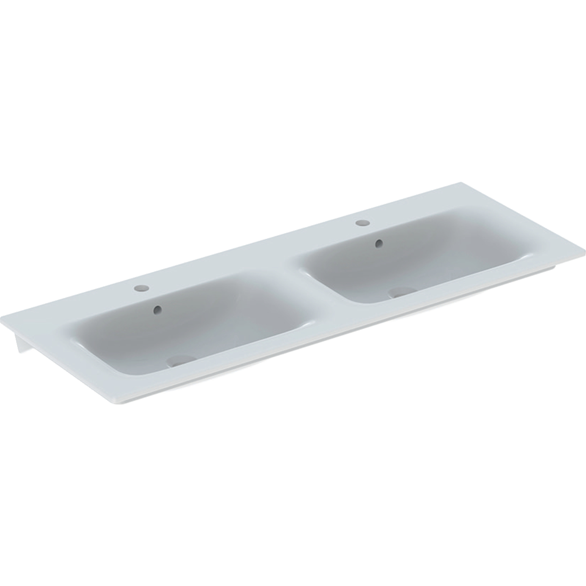 Geberit Renova Plan dubbelt tvättställ: B=130cm, T=48cm, Kranhål=Mitten, Överfyllnad=Synlig, Vit / KeraTect