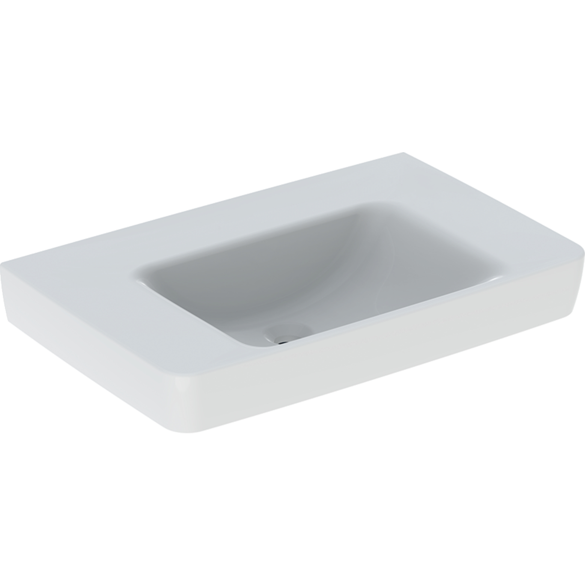 Geberit Renova Plan tvättställ med avställningsyta: B=75cm, T=48cm, Kranhål=Utan, Överfyllnad=Utan, Avställningsyta=På bägge sidor, Vit
