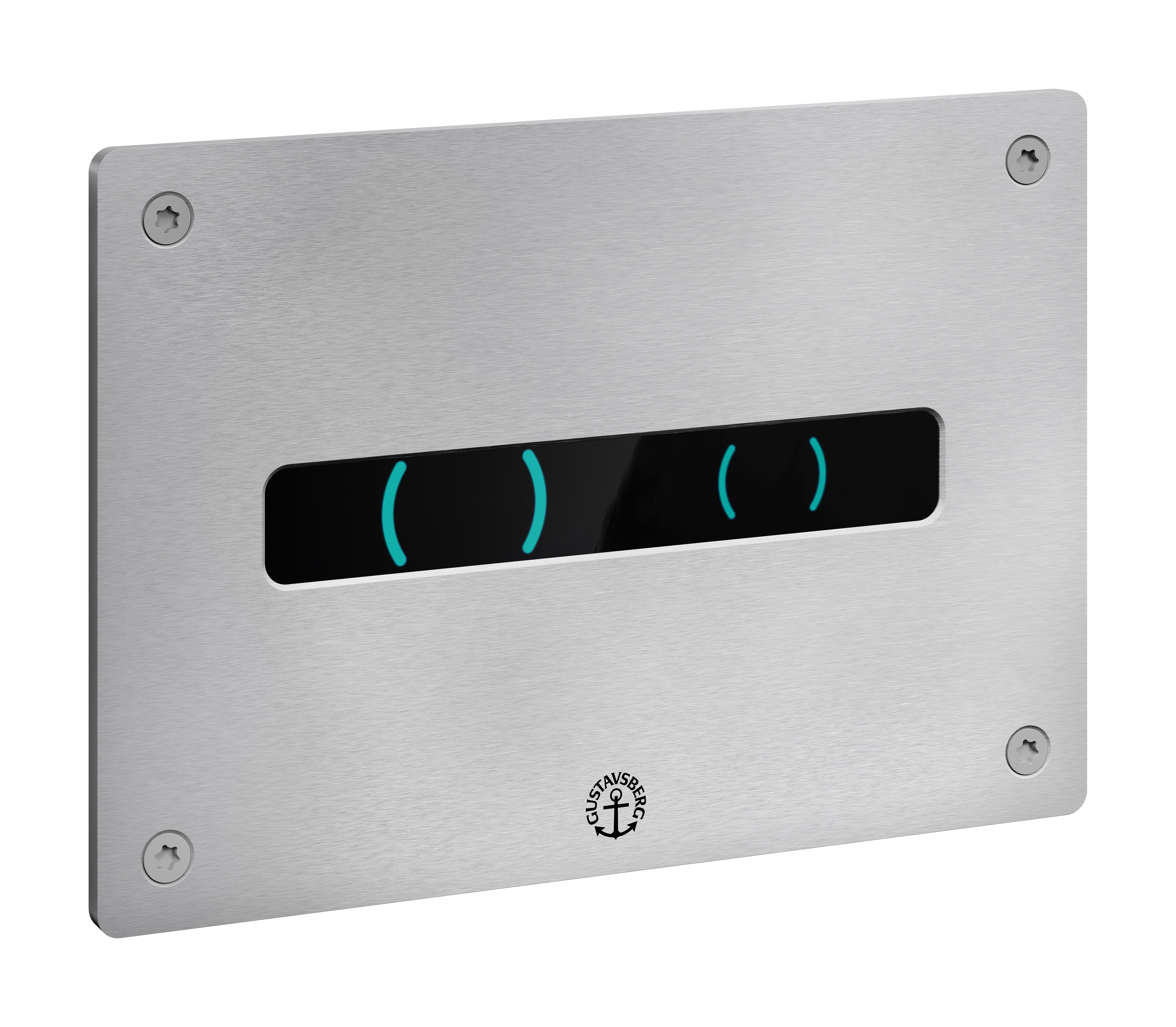 Sensorstyrt väggtrycke i rostfritt för Gustavsberg Triomont XS fixturer. "Vandalutförande" för offentlig miljö