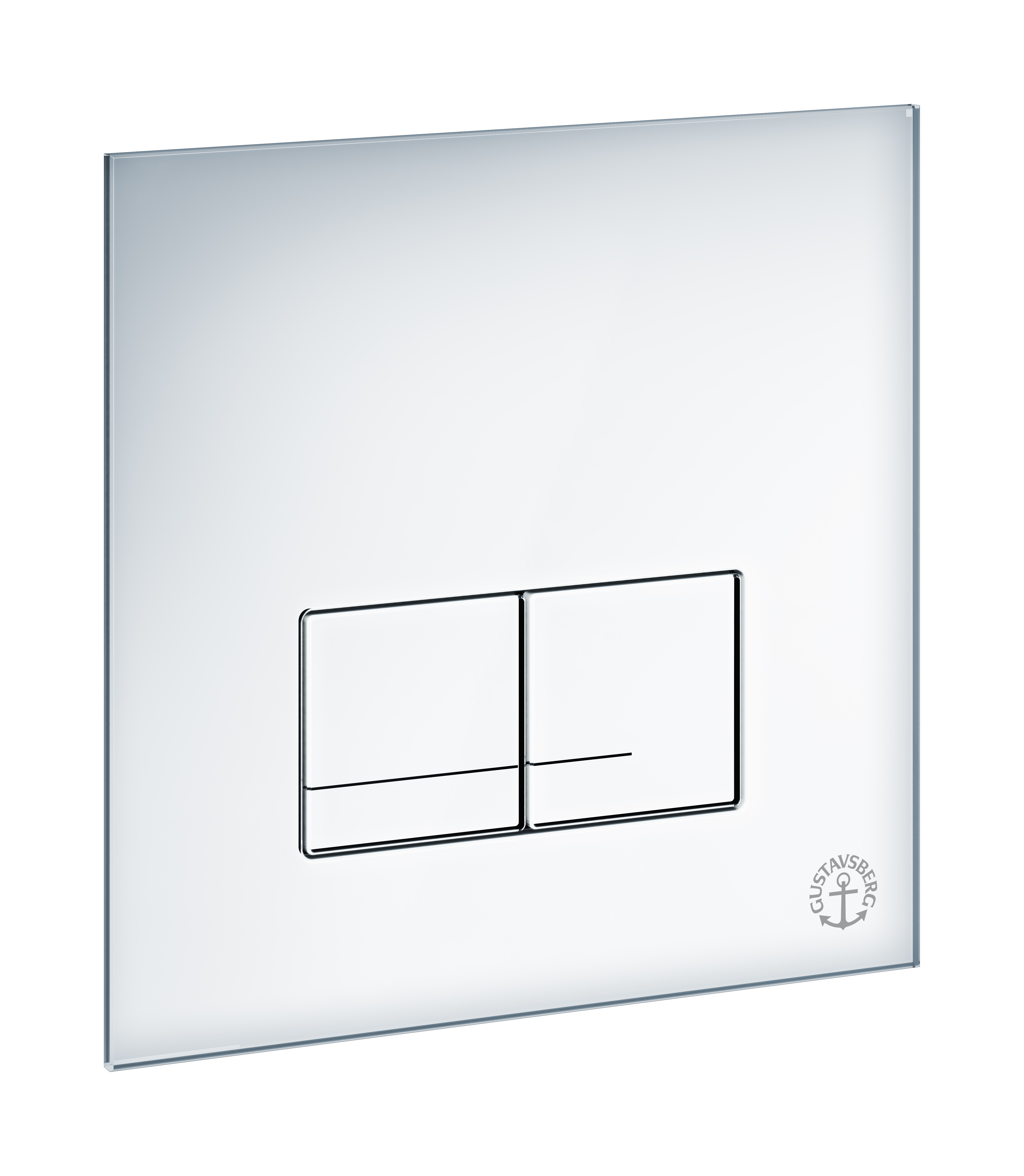 Väggtrycke i vitt glas för Gustavsberg Triomont XS fixturer