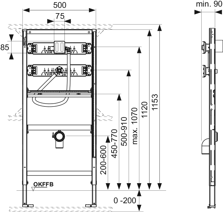 Ventilhus till spolventil U1 monterad på höj- och sänkbar platta
