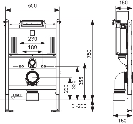 c/c avstånd på WC-bultar för montage av WC-porslin är 180 mm och 230 mm.