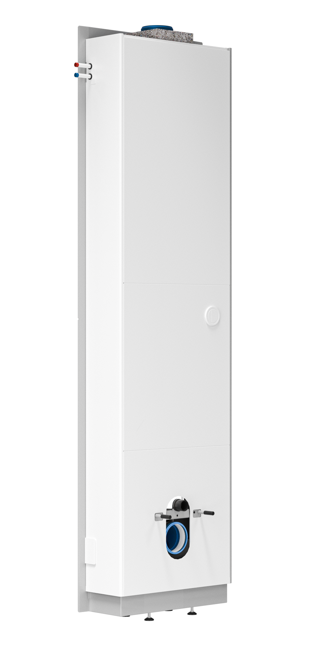 Våtrumskassett för snabbt och säkert montage av stammar i fastigheter vid stambyte eller nyproduktion. Komplett med stammar för tappvatten, avlopp samt spolcistern för WC. Våtrumskassettens unika ljuddämpade avloppskonstruktion erbjuder en dokumenterat hög nivå av ljuddämpning. SAFE Q har typgodkända lösningar för tätning av schaktbotten och anslutning av tätskikt. Anslutning av tätskikt utförs efter montage mot vägg för att undvika skador på rummets tätskikt under byggprocessen. Stam för KV separeras med isolering från VV/VVC genom hela våtrumskassetten. Samtliga kopplingar och ventiler är lätt åtkomliga från serviceluckan. Bakplanet som monteras mot vägg levereras delat i en kartong för att underlätta hantering på arbetsplatsen. Samtliga rör och kopplingar är placerade på bakplanet vilket erbjuder möjlighet till tryck och täthetsprovning i ett tidigt skede. Våtrumskassettens front levereras i vitlackerad plåt eller förberedd för kakelbeklädnad.
