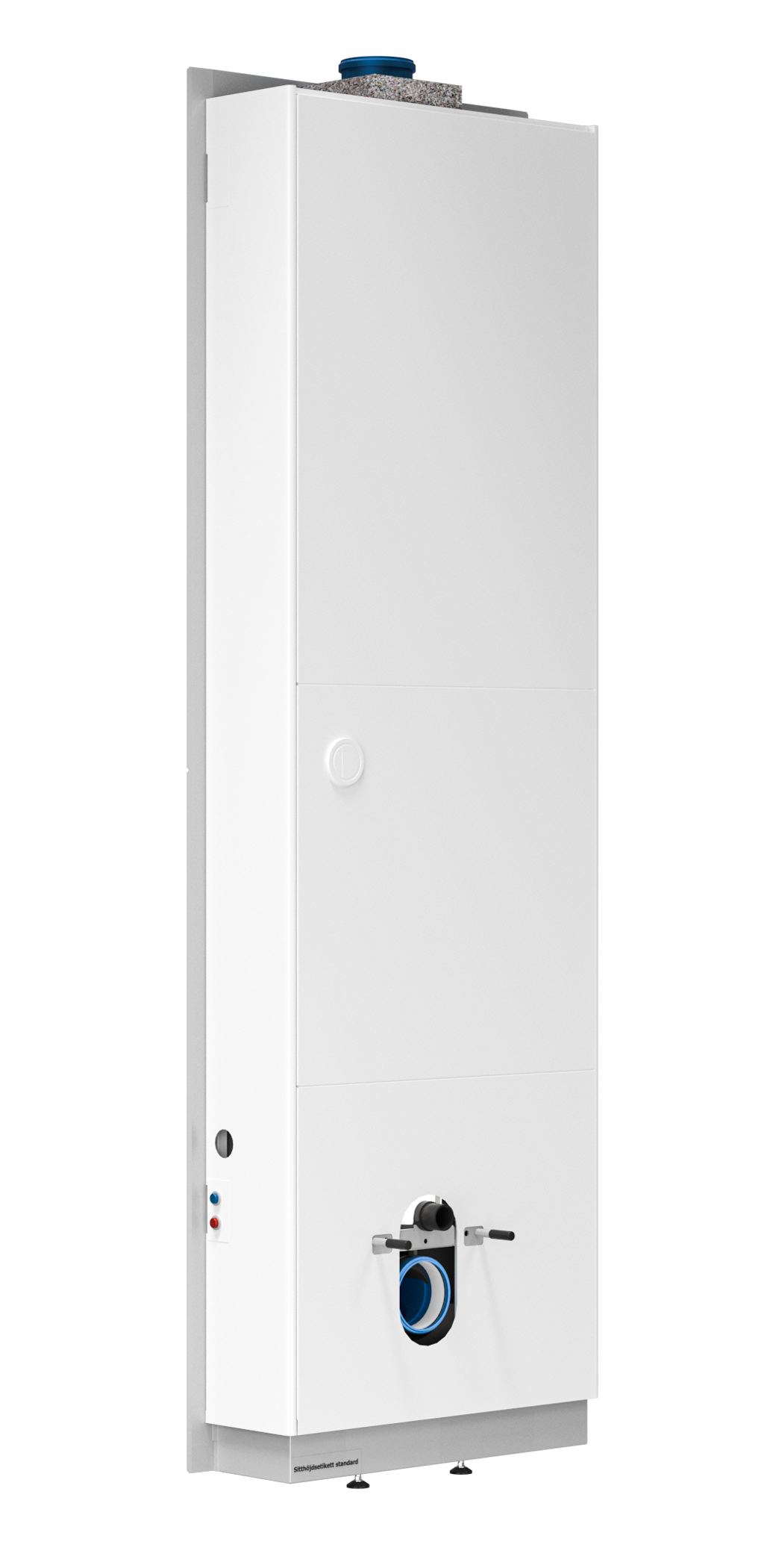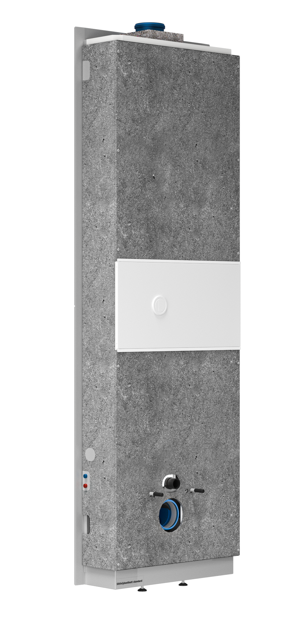 Våtrumskassett för snabbt och säkert montage av stammar i fastigheter vid stambyte eller nyproduktion. Komplett med stammar för tappvatten, VS, avlopp samt spolcistern för WC. Våtrumskassettens unika ljuddämpade avloppskonstruktion erbjuder en dokumenterat hög nivå av ljuddämpning. SAFE Q har typgodkända lösningar för tätning av schaktbotten och anslutning av tätskikt. Anslutning av tätskikt utförs efter montage mot vägg för att undvika skador på rummets tätskikt under byggprocessen. Stam för KV separeras med isolering från VV/VVC/VS genom hela våtrumskassetten. Samtliga kopplingar och ventiler är lätt åtkomliga från serviceluckan. Bakplanet som monteras mot vägg levereras delat i en kartong för att underlätta hantering på arbetsplatsen. Samtliga rör och kopplingar är placerade på bakplanet vilket erbjuder möjlighet till tryck och täthetsprovning i ett tidigt skede. Våtrumskassettens front levereras i vitlackerad plåt eller förberedd för kakelbeklädnad.