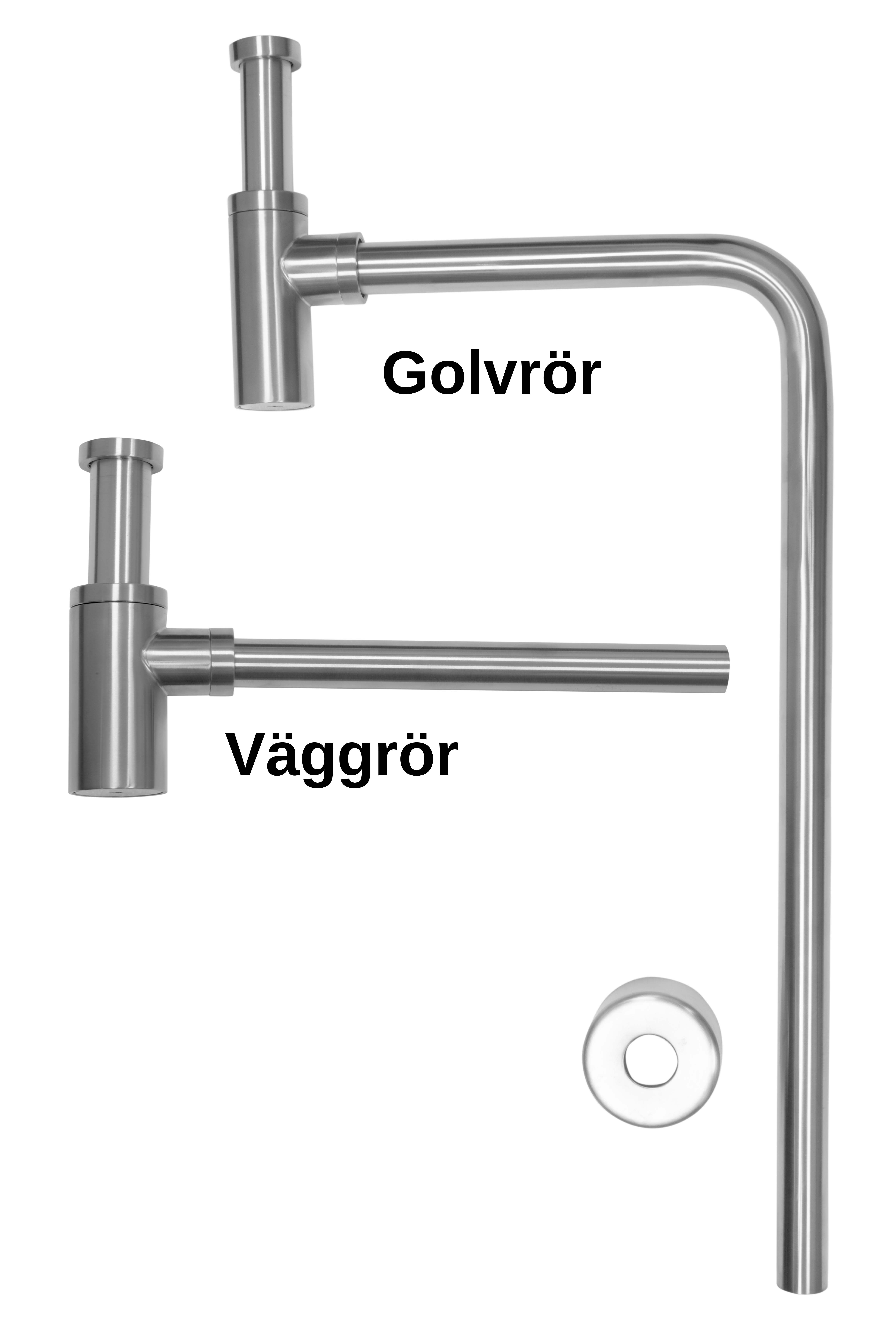 Vattenlås till tvättställ i rostfritt stål. Passar både för vägg och golv montage