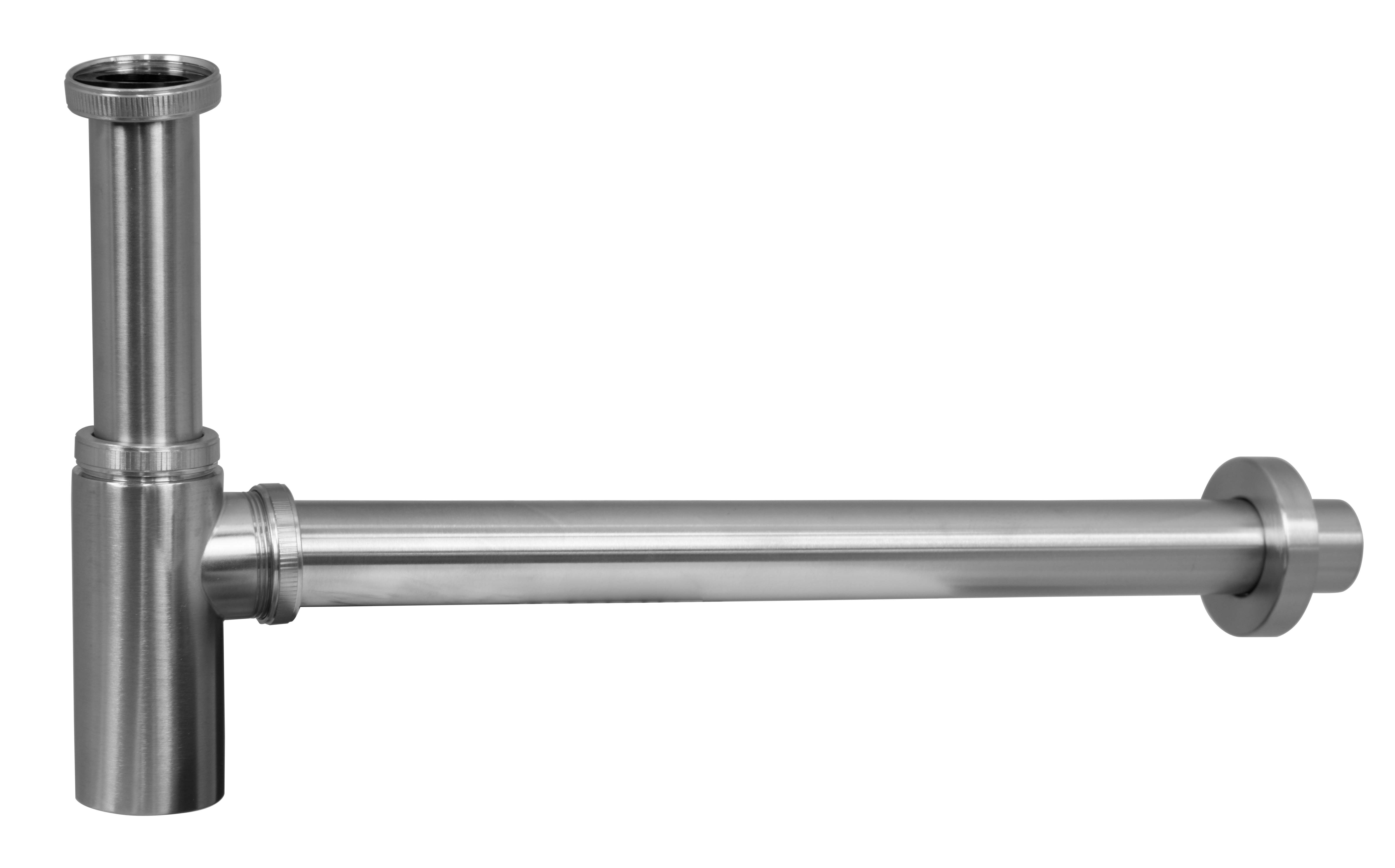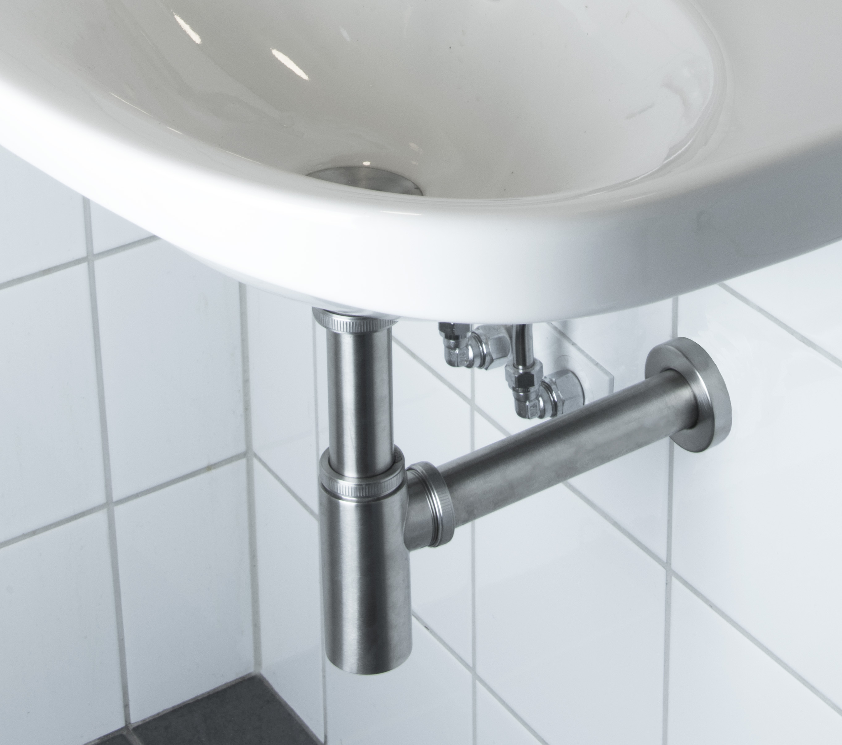 Vattenlås till tvättställ i rostfritt stål. Passar för vägg montage