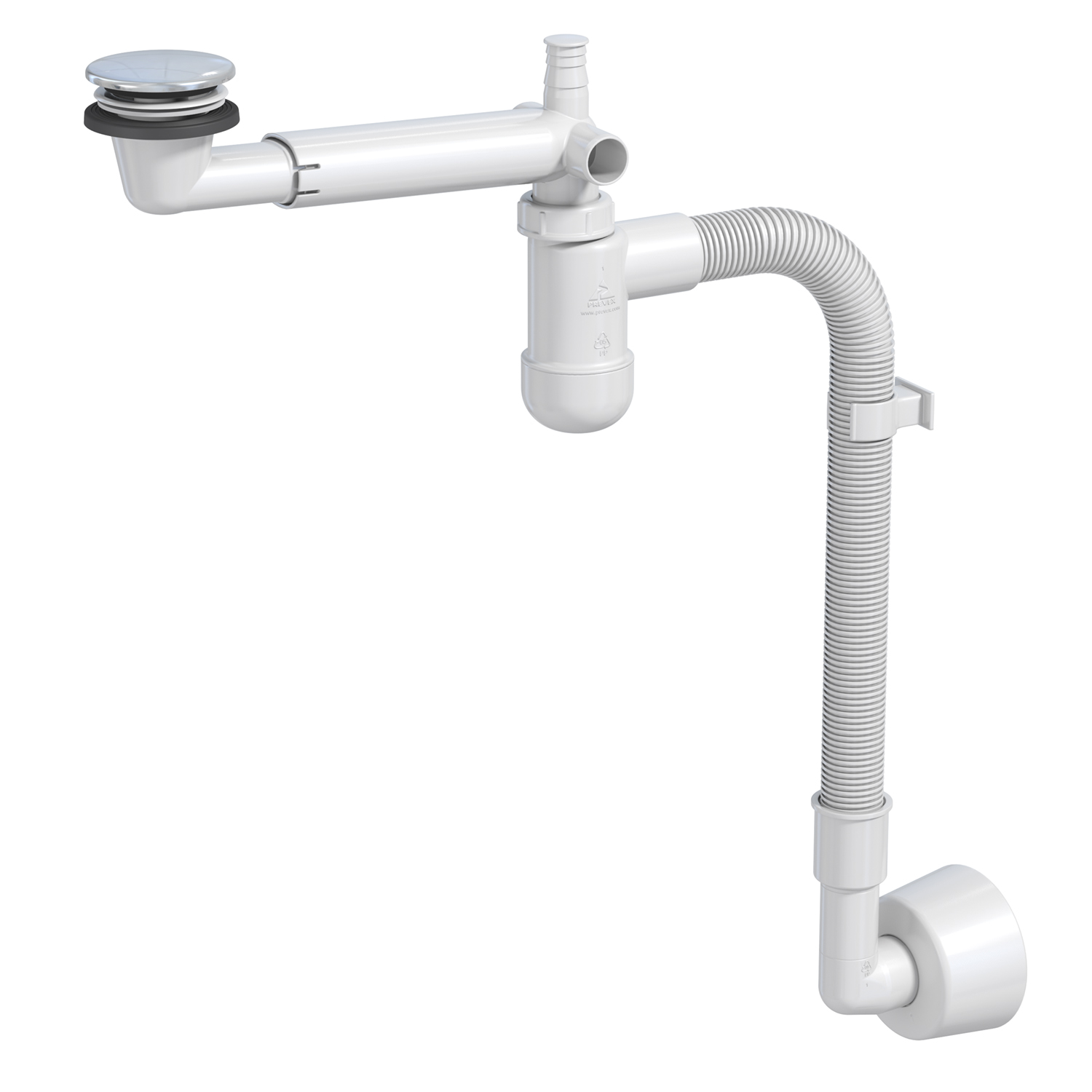 Vattenlås för tvättställ med flexibelt utloppsrör,kapbar teleskopsarm och popup ventil