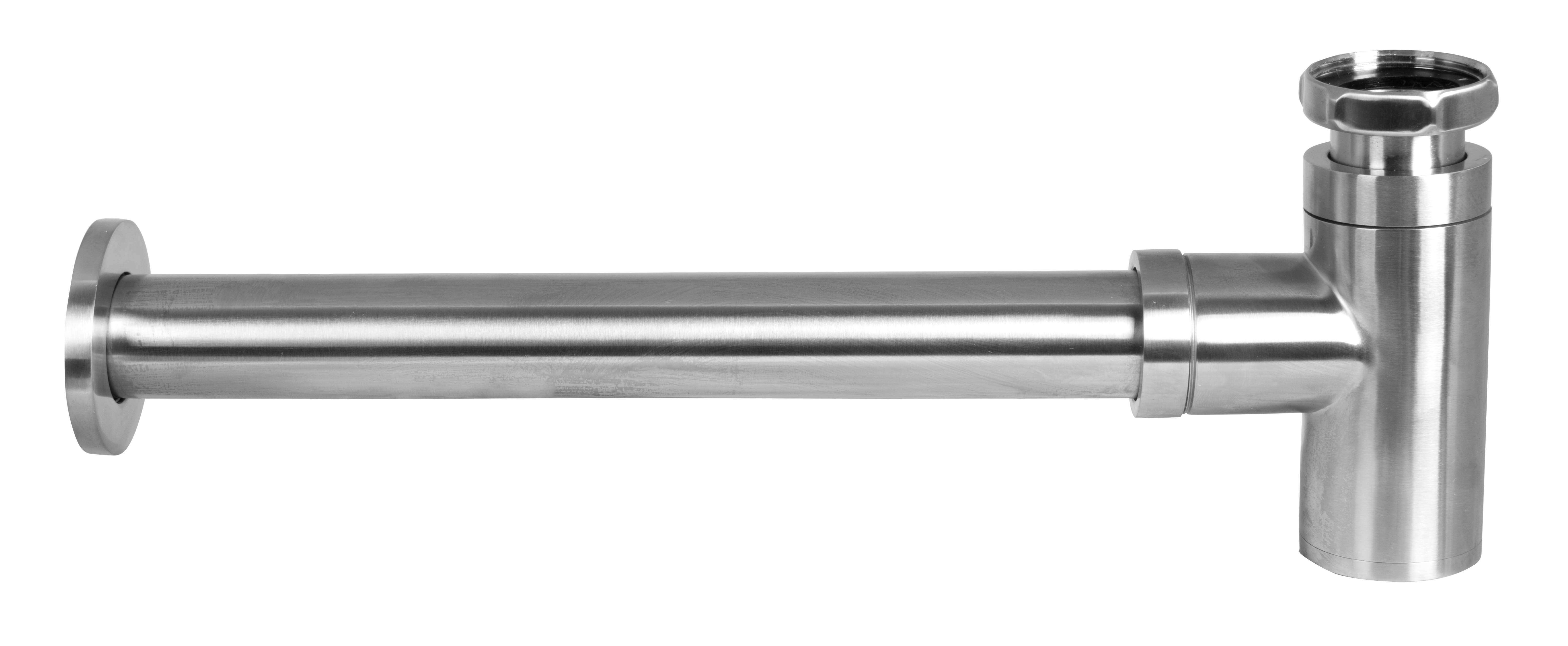 Vattenlås till tvättställ i rostfritt stål. Passar för vägg montage