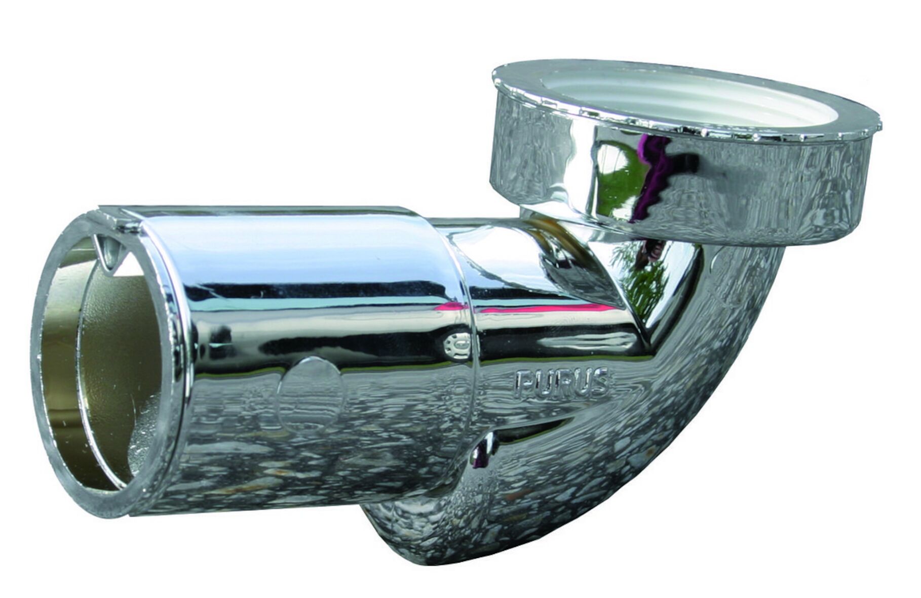 PUM utloppsvinkel horisontell i kromad plast med G32/G40 anslutning avsedd för Ø40 mm utloppsrör. Luktspärren (membranet) är integrerad i utloppsvinkeln och sitter i röret för enkel rengöring. PUM/luktspärren ersätter vanligt pungvattenlås och sparar därmed plats under applikationen. PUM utloppsvinkel monteras tillsammans med vanliga bottenventiler.