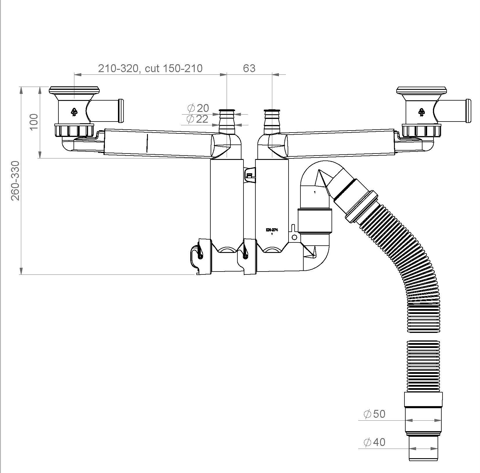 Vatette väggkopplingssystem 40 c/c