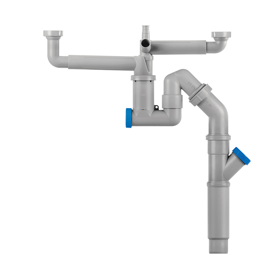 Mycket flexibelt diskbänksvattenlås för installation i kök, tvättstuga och städutrymme. Vattenlåset kan anslutas mot diskho, tvättbänk och utslagsvask. Vattenlåset går att ansluta mot golv eller vägg. Tack vare vattenlåsets flexibilitet går det att placera längst in i skåpet vilket därmed ger plats för källsortering eller liknande. Avstånd mellan anslutningar uppåt kan variera upp till 580 mm i sidled och 130 mm i höjdled. Vid behov kan armarna byta plats och även kapas för maximal flexibilitet. Vattenlåset är särskilt lämpat för nyinstallationer, men passar även för renoveringar. OBS! Vid anslutning till gammal diskho där silen har mindre hål jämfört med moderna diskhoar kan flödet påverkas negativt. I de fallen välj DB-Lås I exempelvis vattenlås med T-förbindning RSK 8086500 .