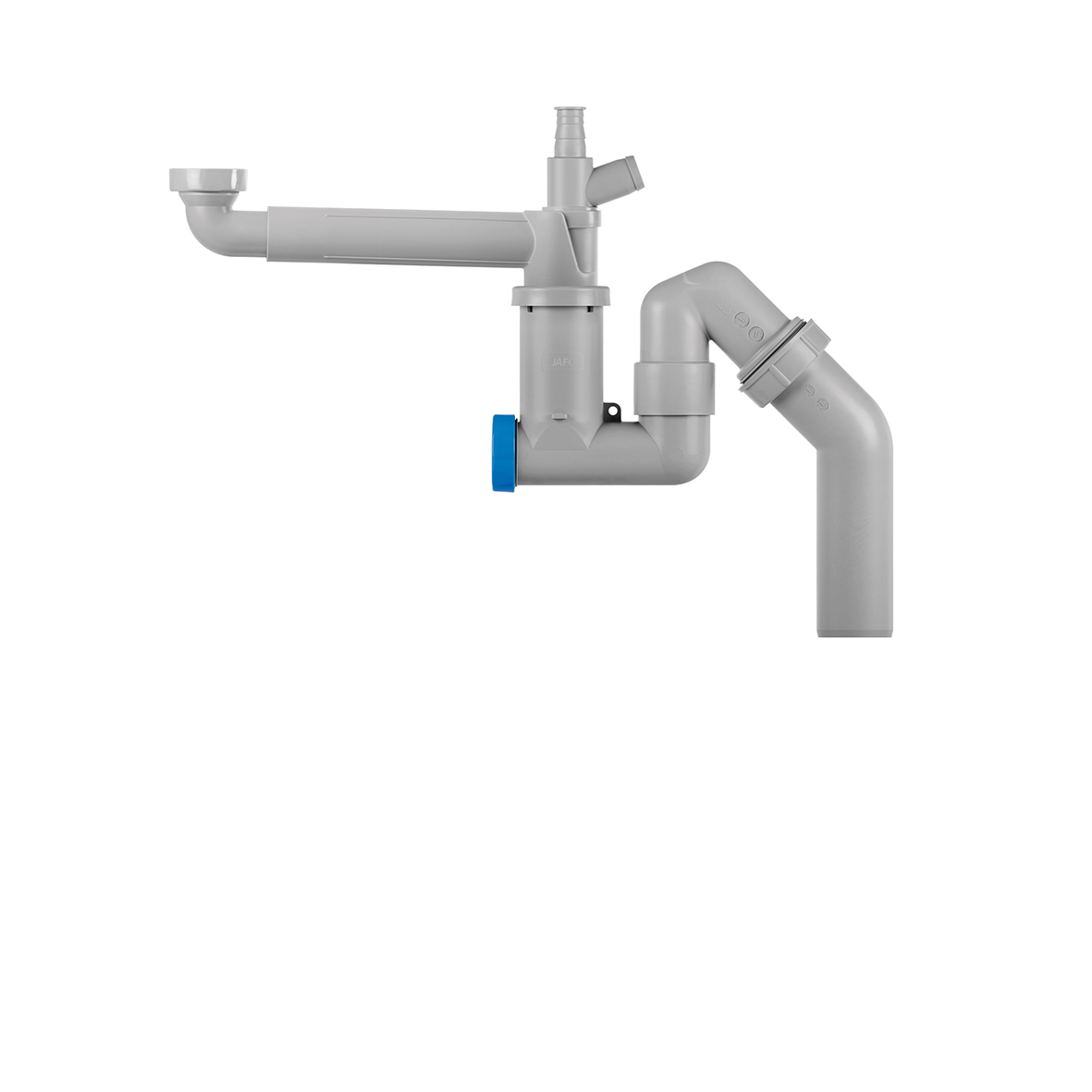 Vattenlåset är lätt att demontera och rensning sker genom att lossa det blå renslocket vilket gör att vattenlåset enkelt kan rengöras.