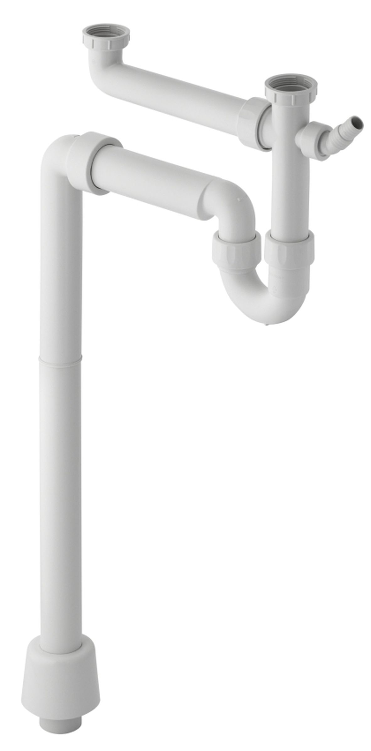 Geberit vattenlås för två diskhoar, med vinkelanslutning, vertikalt utlopp: d=50mm, G=1 1/2", Alpinvit