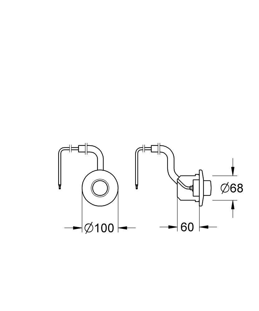 Pneumatisk tryckknapp GROHE StarLight kromyta, tryckknappsmanövrering med väggfäste Ø 100 mm, pneumatisk slang 1,50 m, Utan manövreringsplatta