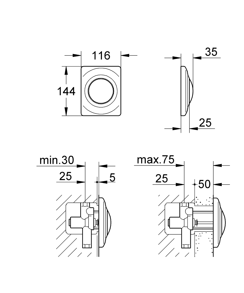 Surf Tryckplatta 116 × 144 mm, med tryckknappsmanövrering, GROHE StarLight kromyta