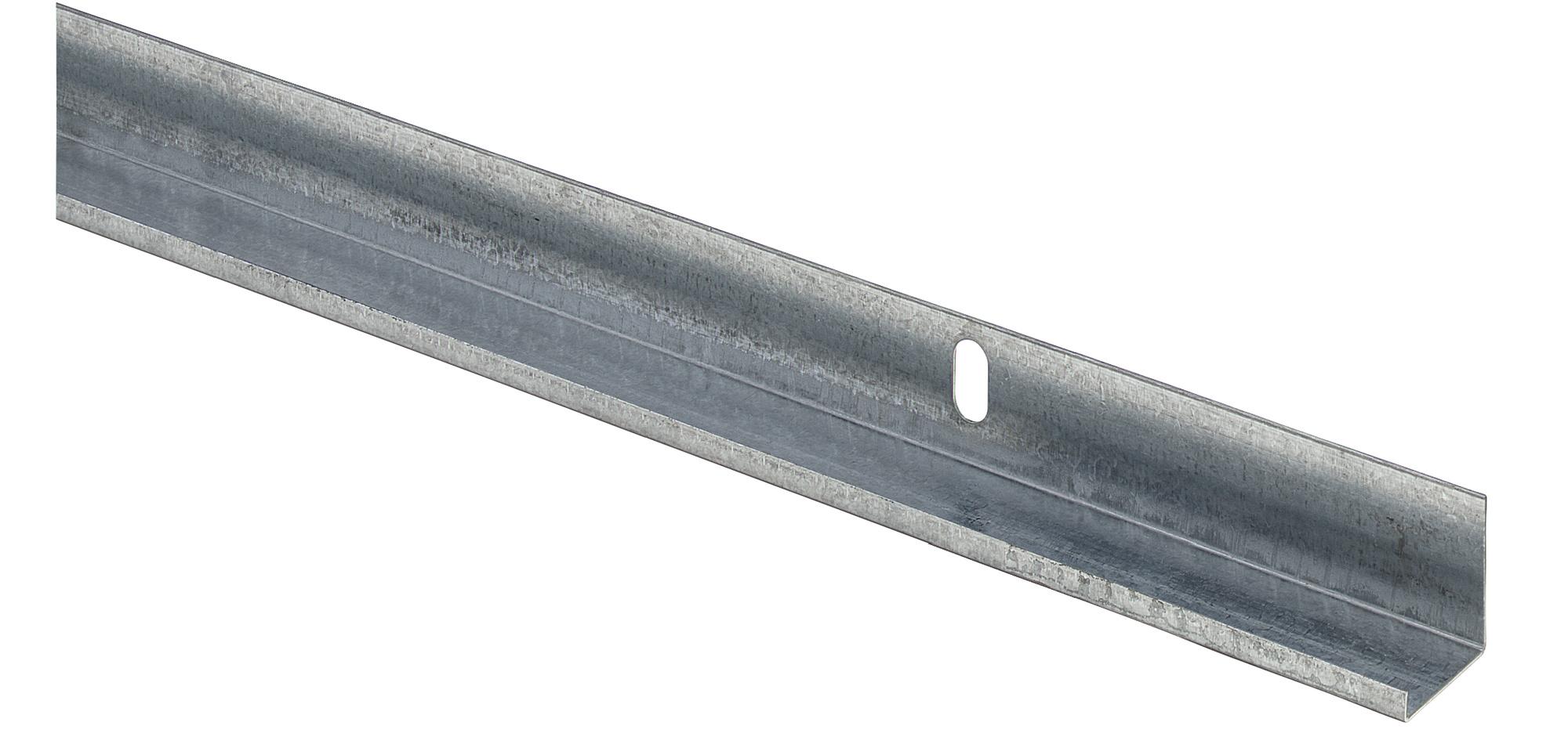 Förzinkad hörnprofil i stål för fastsättning av gipsbeklädnad på väggar, golv och tak. Utan fästmaterial.