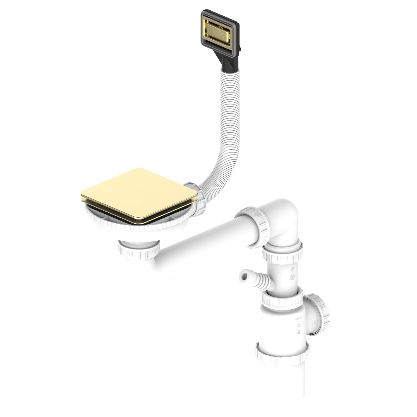 Ventilset till FlexLinea enkellåda. Fyrkantig korgventil med dekorativt skydd i PVD brass.