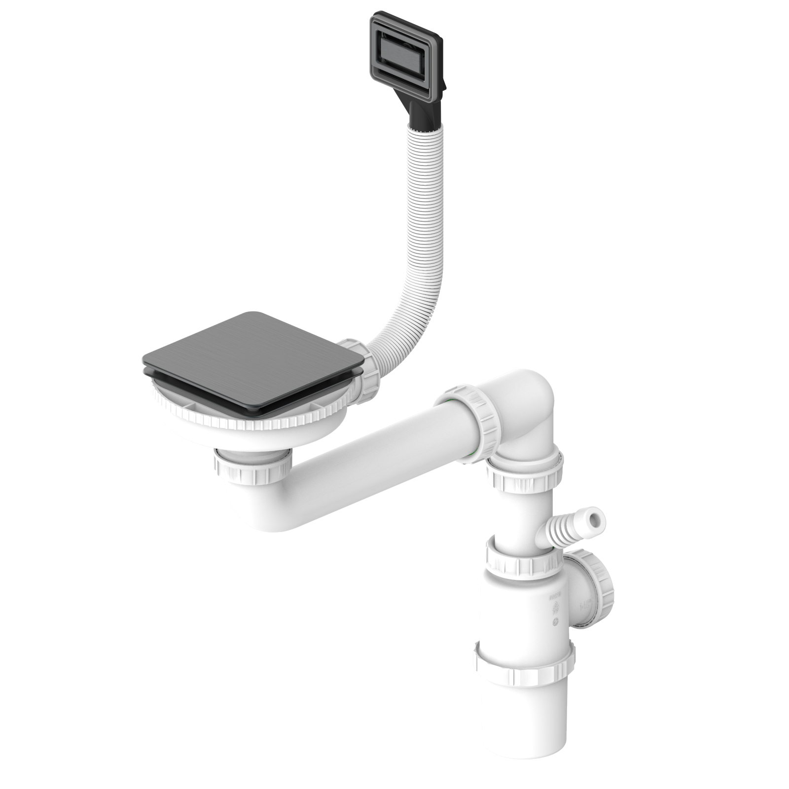 Ventilset till FlexLinea enkellåda. Fyrkantig korgventil med dekorativt skydd i PVD titanium.