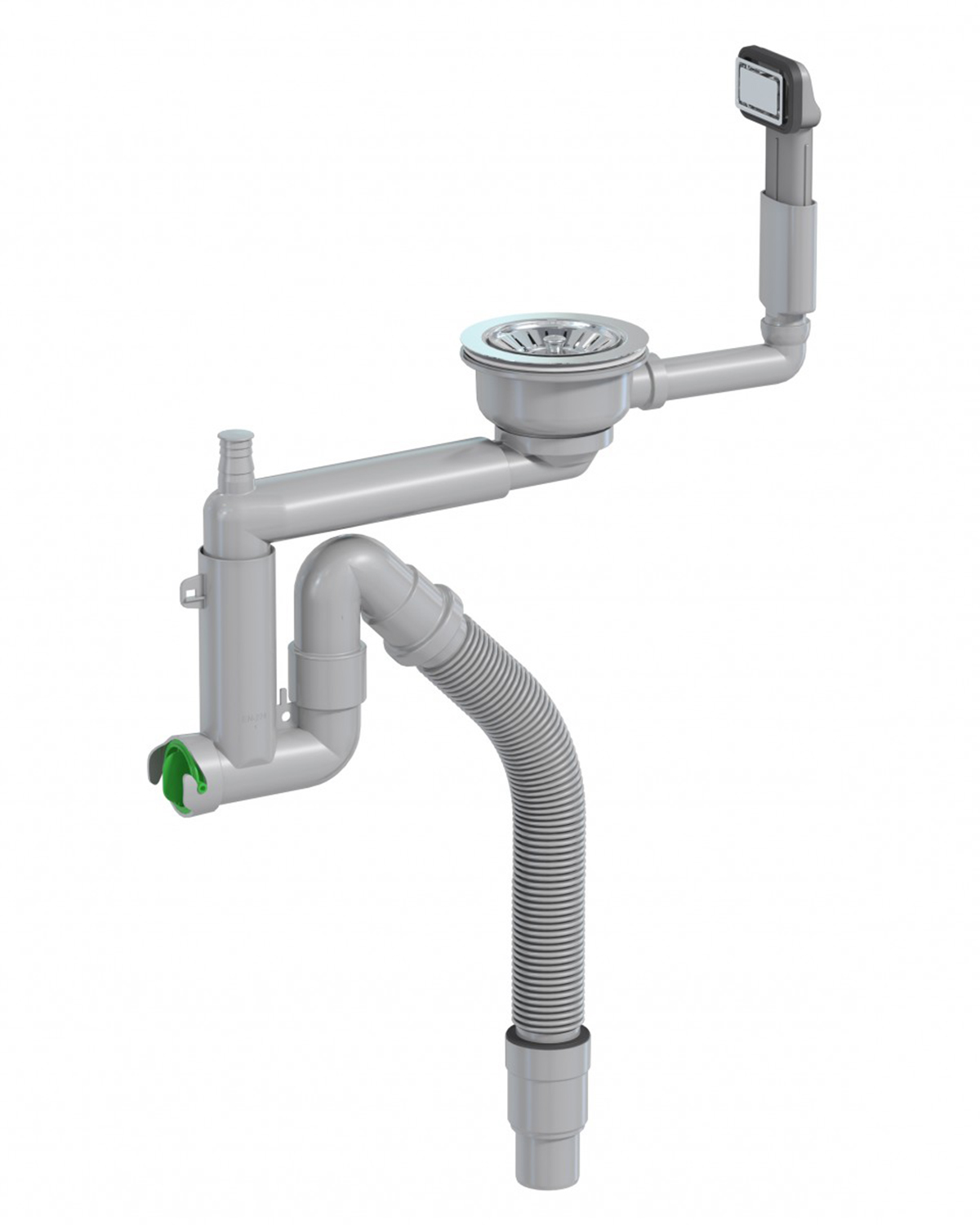 Med manuell korgventil och rektangulärt bräddavlopp.