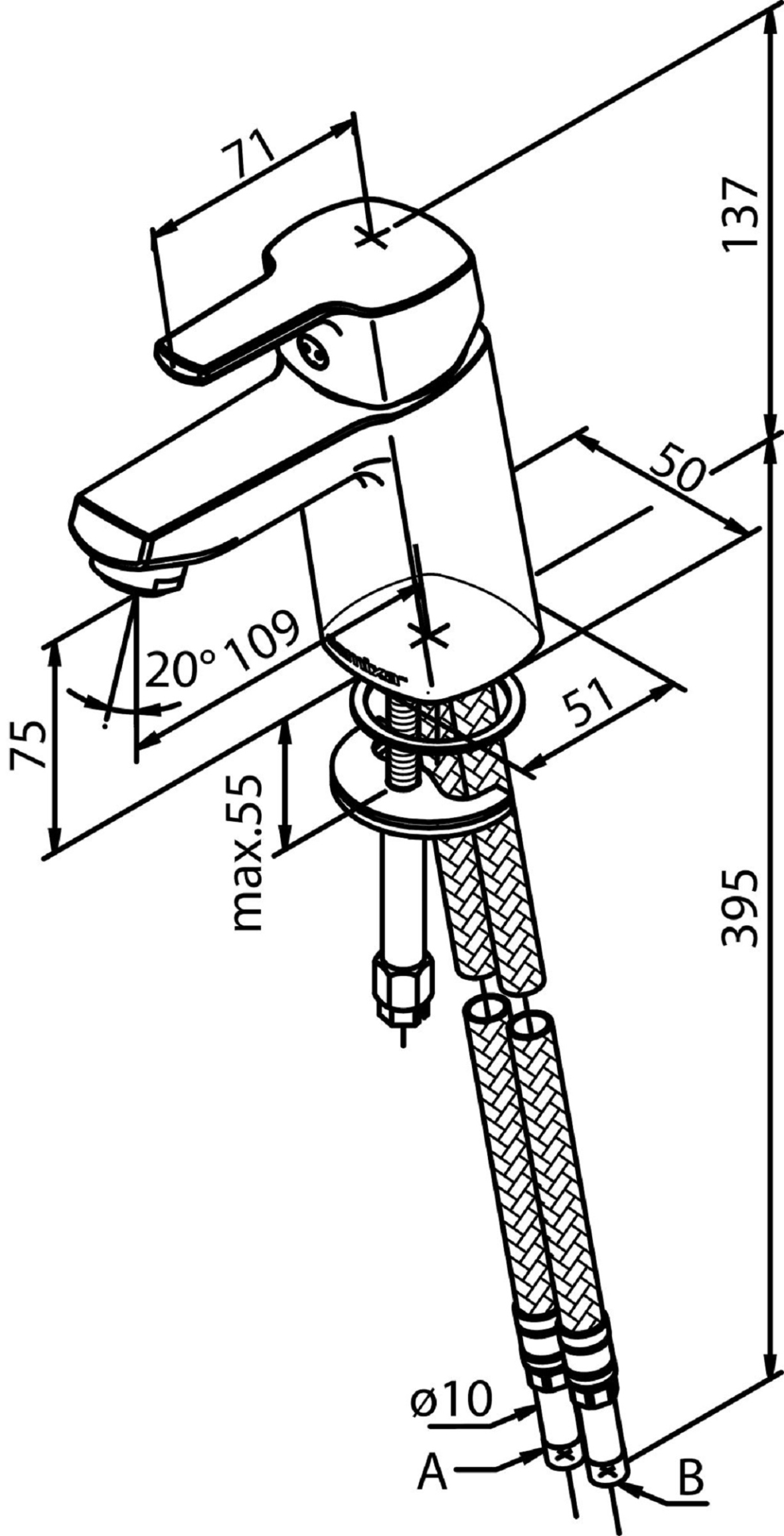 Pine Tvättställsblandare med kallstart - utan bottenventil.