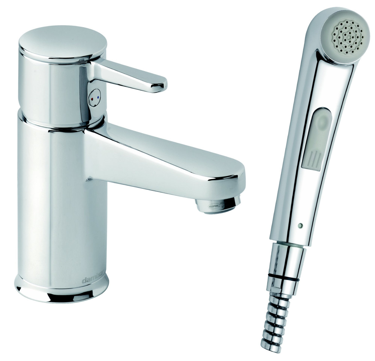 Fern Tvättställsblandare med sidodusch, "Vrid & spara"-funktion - utan bottenventil
