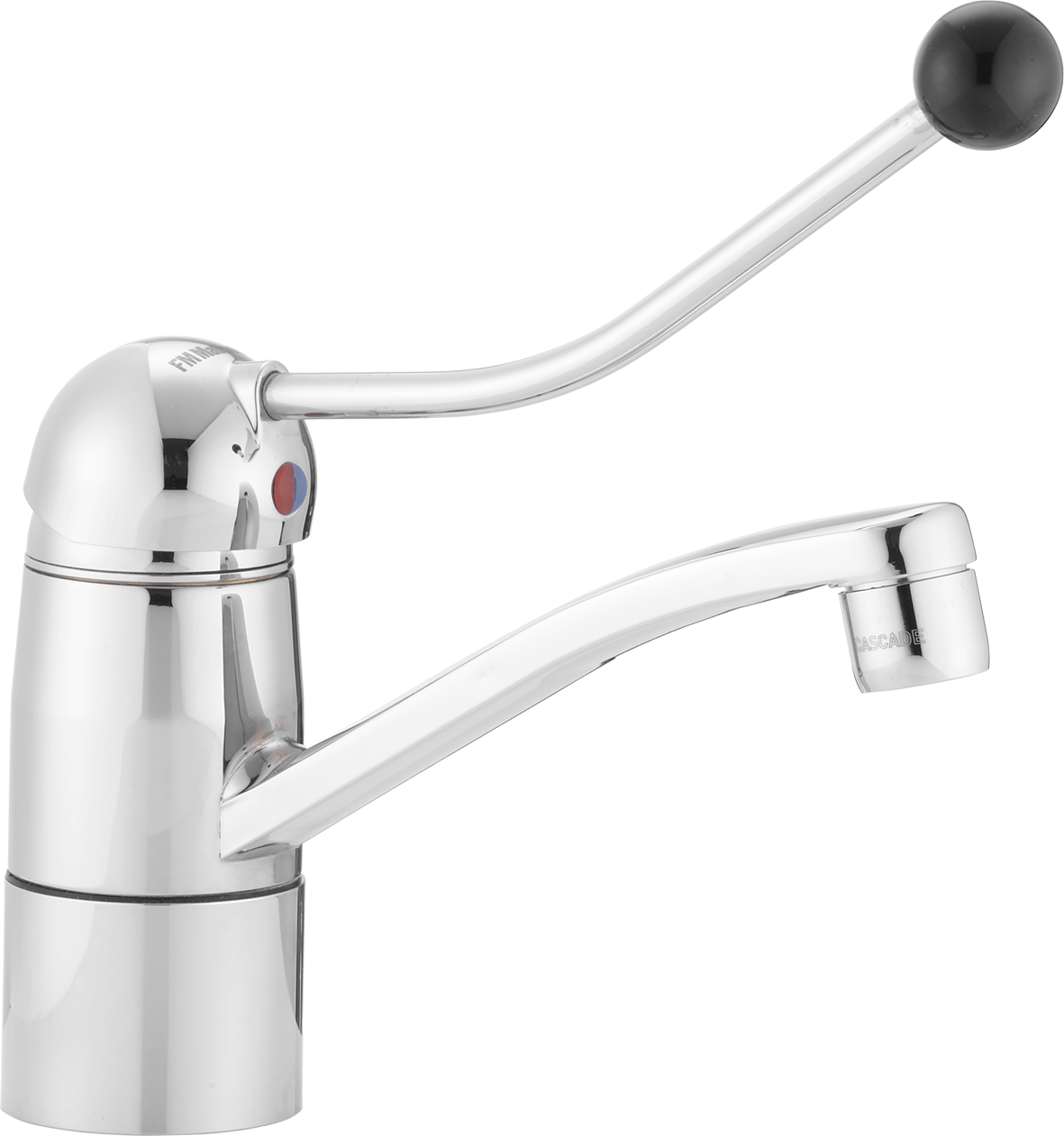 En tvättställsblandare med extra långt piputsprång, svängbar pip och 190 mm spak, för enkelt och säkert handhavande. Finns även med fast pip.
