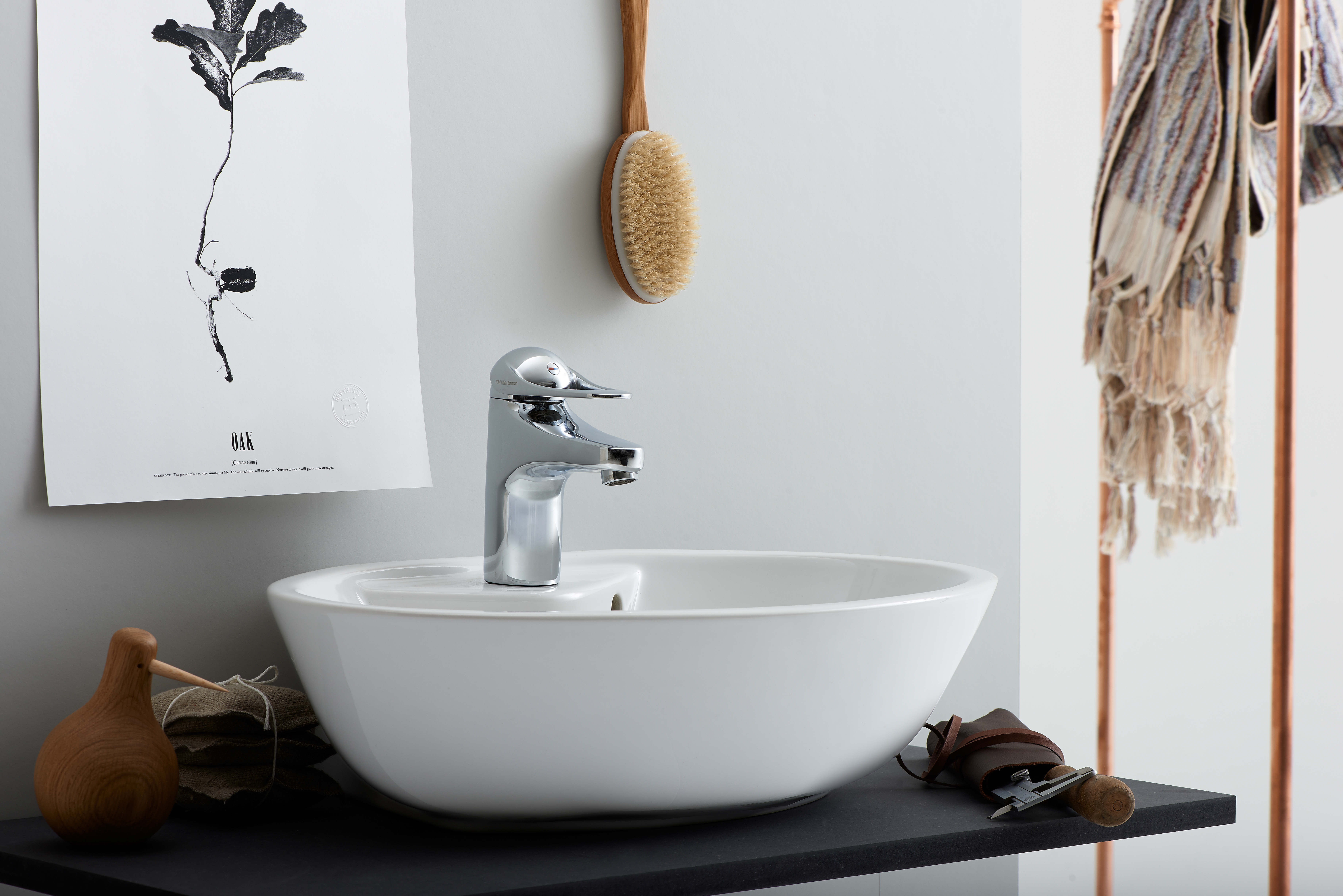 Energiklassad tvättställsblandare med ekoflöde. Mjukstängning som förhindrar smällar och tryckstötar är standard, liksom kallstart, keramisk tätning och inbyggd temperaturspärr. 5 års tryckgaranti. Finns även med silpluggsventil eller tryckplugg.