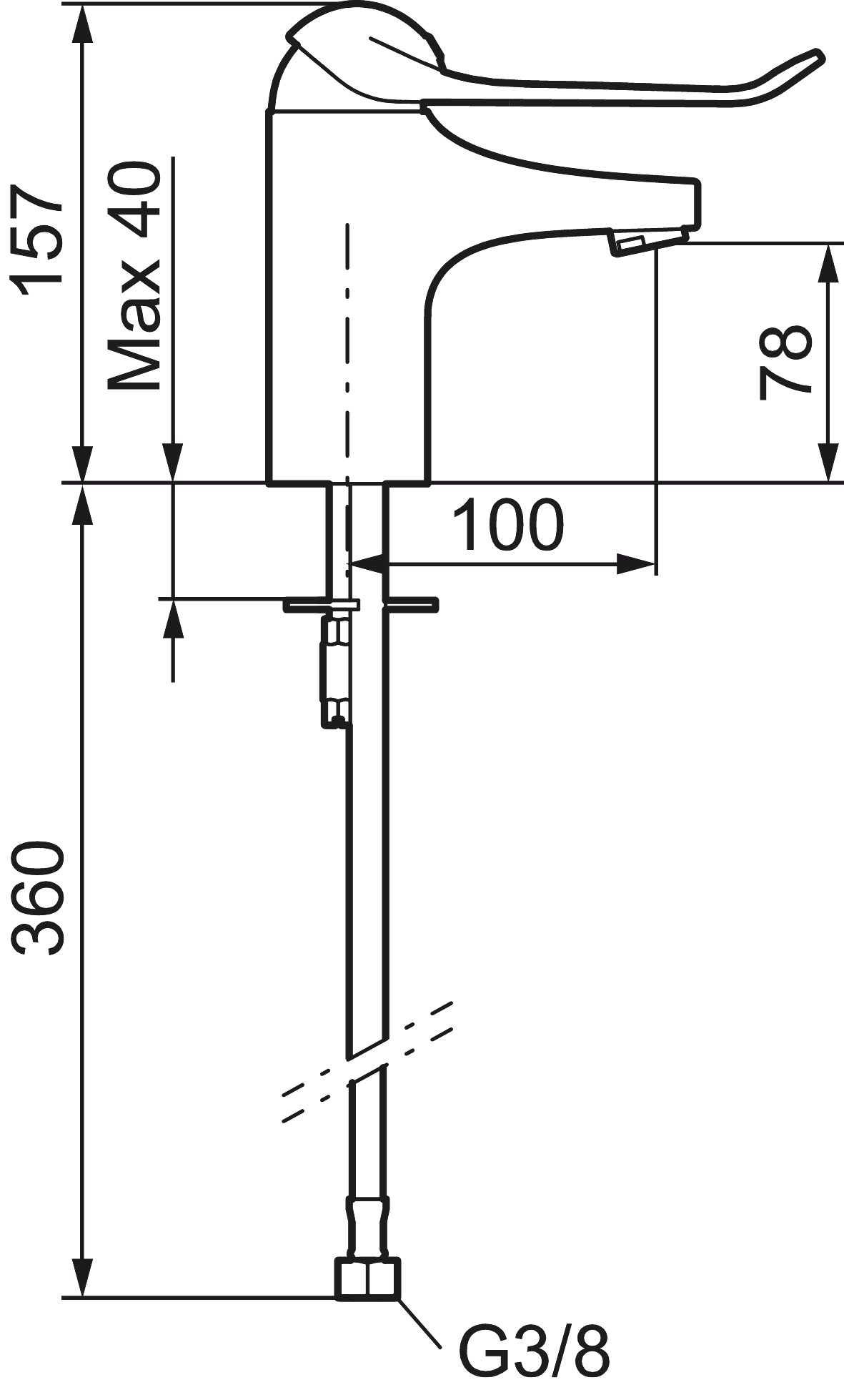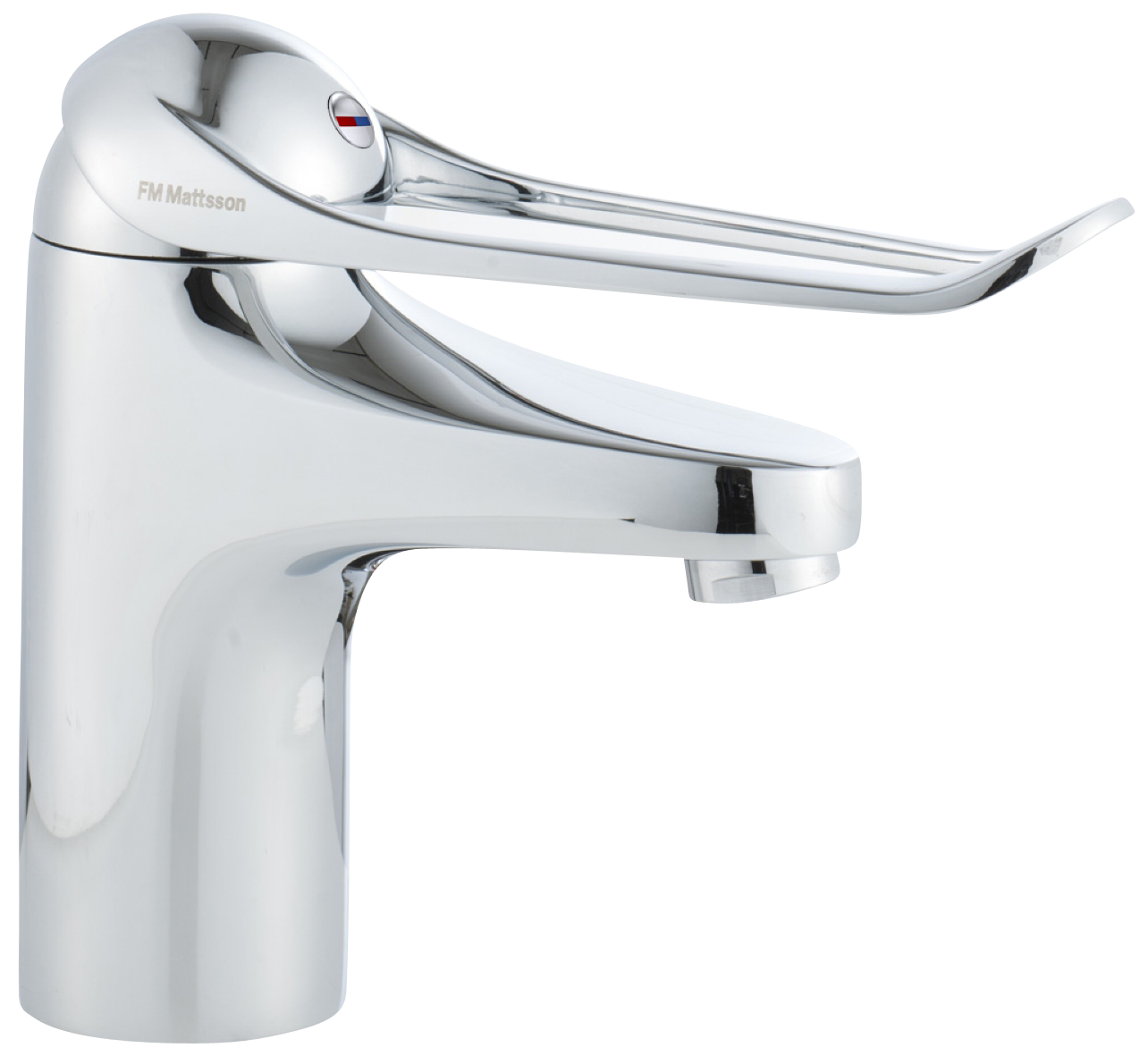 Energiklassad tvättställsblandare med lyftventil och ekoflöde. Mjukstängning som förhindrar smällar och tryckstötar är standard, liksom kallstart, keramisk tätning och inbyggd temperaturspärr. 5 års tryckgaranti. Här med en extra lång spak på 150 mm.