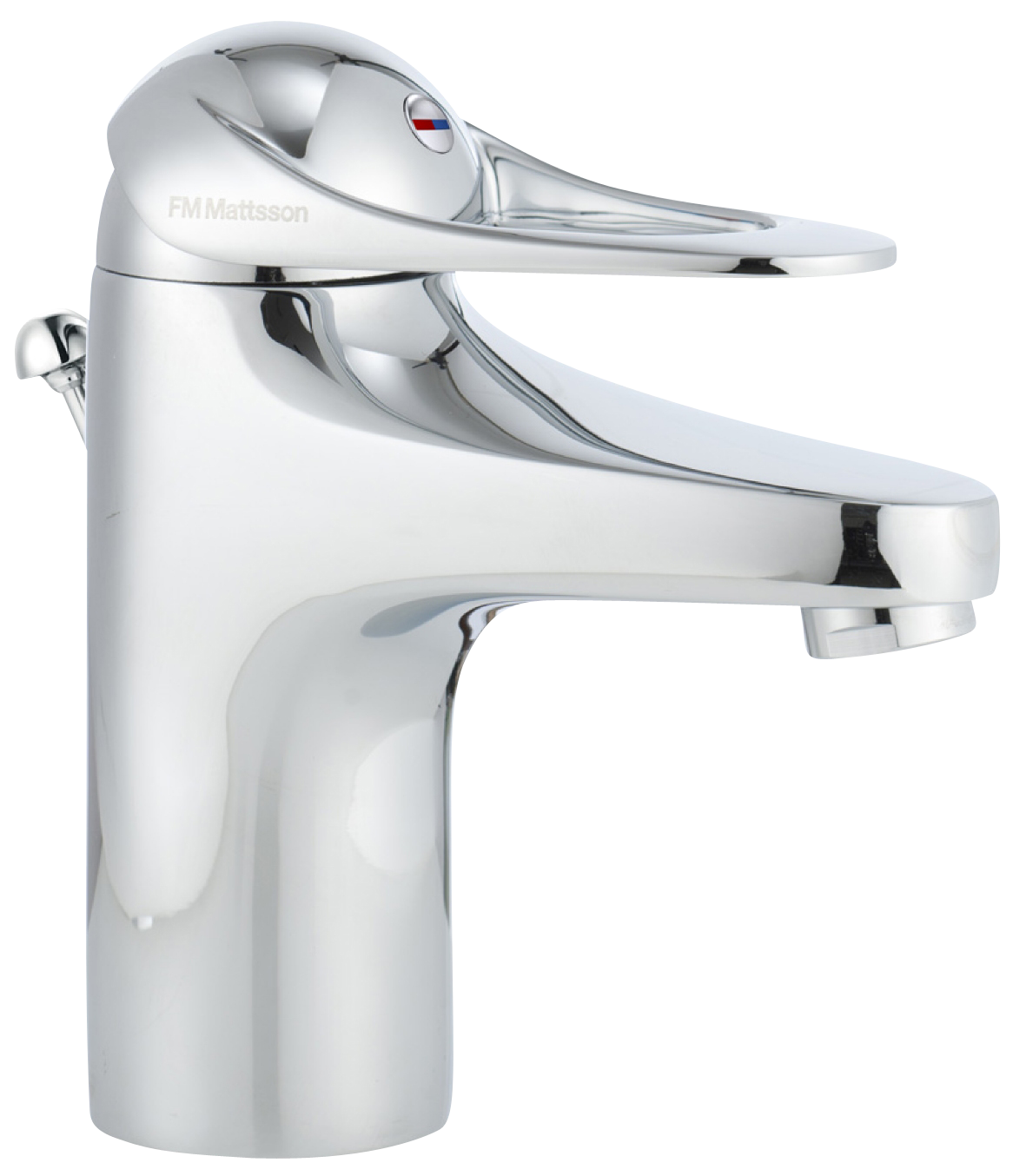 Energiklassad tvättställsblandare med lyftventil. Ekoflöde. Mjukstängning som förhindrar smällar och tryckstötar är standard, liksom kallstart, keramisk tätning och inbyggd temperaturspärr. 5 års tryckgaranti. Finns även med silpluggventil eller tryckplugg.