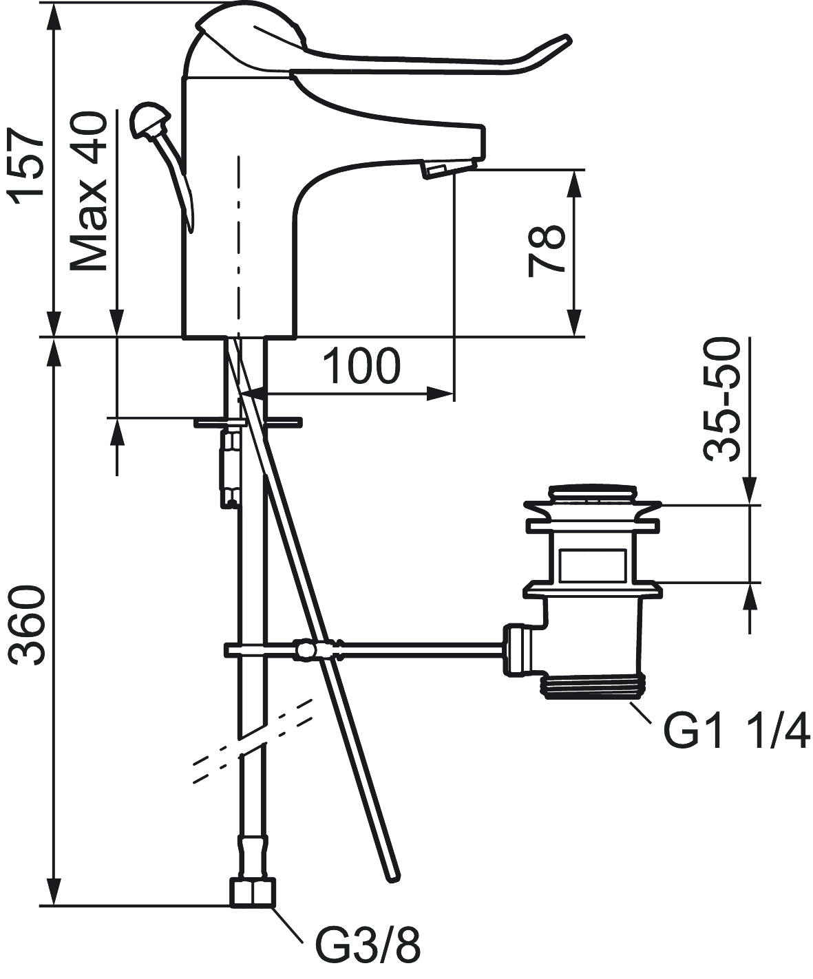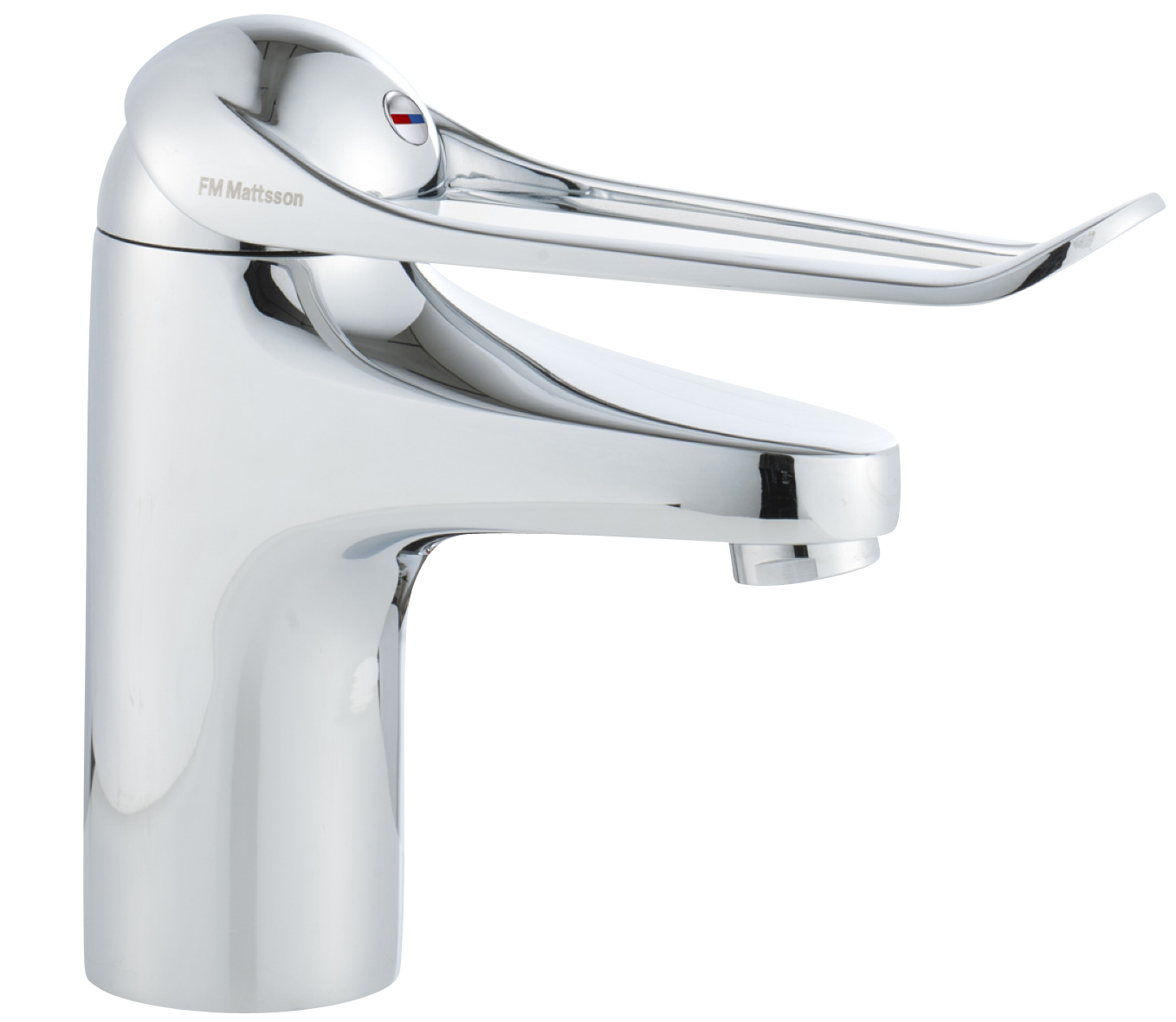 Energiklassad tvättställsblandare med lyftventil och ekoflöde. Mjukstängning som förhindrar smällar och tryckstötar är standard, liksom kallstart, keramisk tätning och inbyggd temperaturspärr. 5 års tryckgaranti. Här med en extra lång spak på 150 mm.