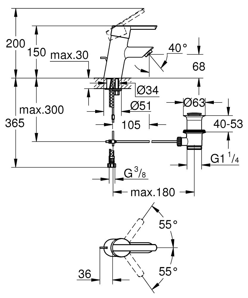 Feel tvättställsblandare ettgrepp, DN 15 i storlek S. Tvättställsblandaren är försedd med GROHE SilkMove 35 mm keramisk insats och metallgrepp. Flödesbegränsaren är inställbar, bottenventilen är på 1 1/4 och den kromade GROHE StarLight-ytbehandlingen underlättar rengöringen. Installationen sker snabbt och enkelt tack vare flexibla anslutningsslangar, GROHE QuickFix, etthålsmontage samt att perlatorn är avsedd för verktygsfritt byte. Temperaturbegränsare finns som tillval.