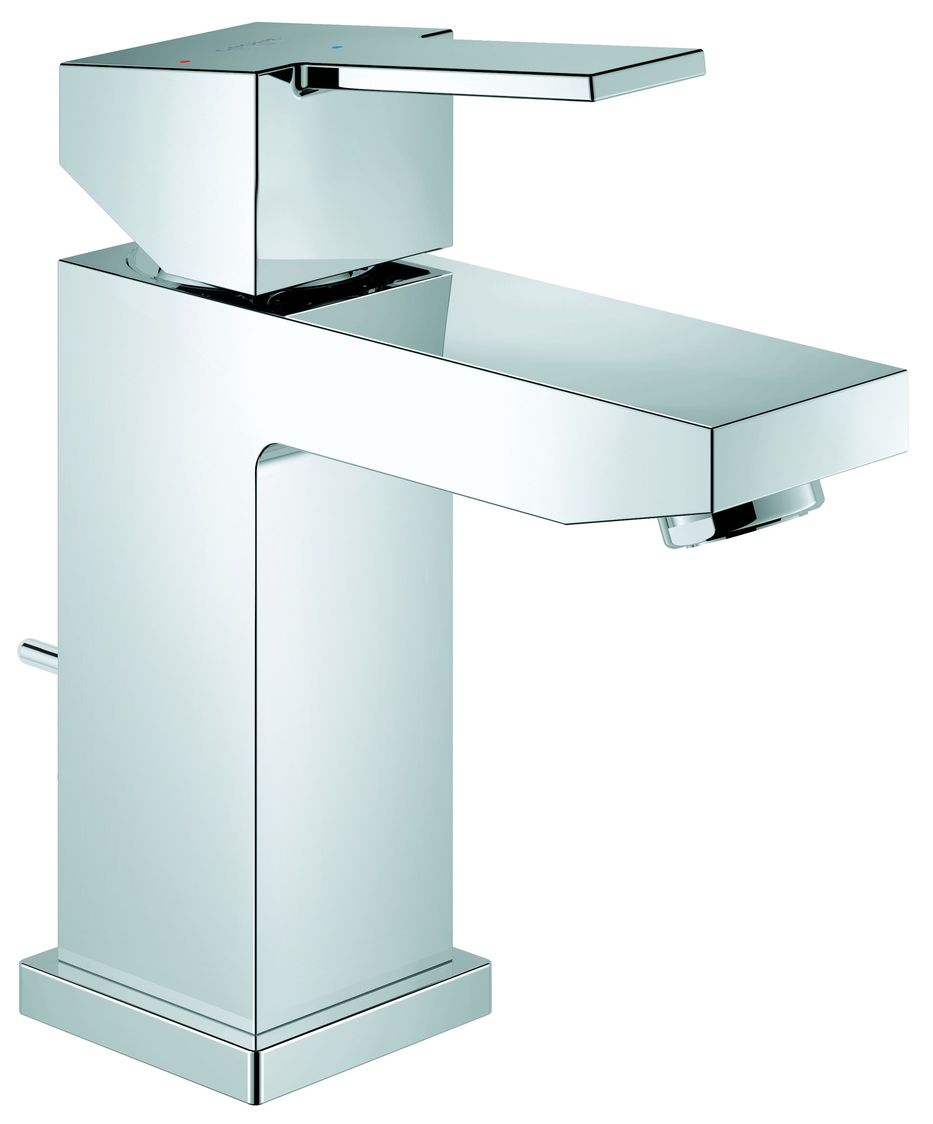 Sail Cube tvättställsblandare ettgrepp, DN 15 i storlek S. Tvättställsblandaren har metallgrepp, temperaturbegränsare, bottenventil på 1 1/4", GROHE SilkMove ES 28 mm keramisk insats med energisparande funktion via kallstart och en strålsamlare på 5,7 l/min via GROHE EcoJoy. Den kromade GROHE StarLight-ytbehandlingen förenklar rengöringen. Installationen sker snabbt och smidigt tack vare flexibla anslutningsslangar och GROHE QuickFix Plus.