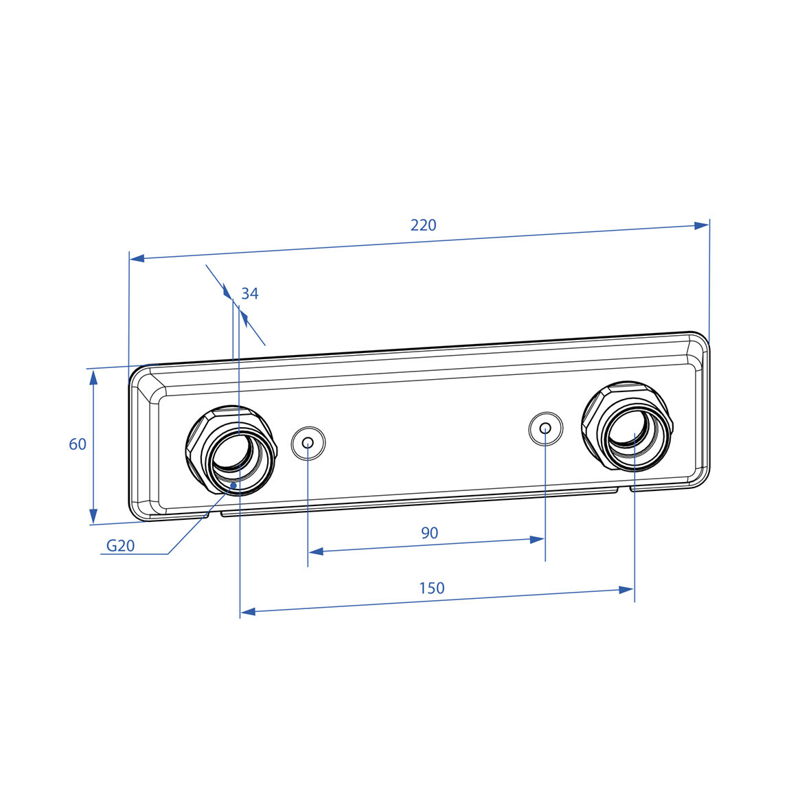 Rostfritt, blankpolerat blandarfäste 150cc, som är avsett för dold rördragning. Ansluter med G20 till blandaren. Inklusive demonterbara kopplingar för 12/15 Cu och VVS-skruv. Anpassad till nya branschregler 2021 med plats för tätskikt. Mått:220x60 mm. Skruvhål 90cc.
