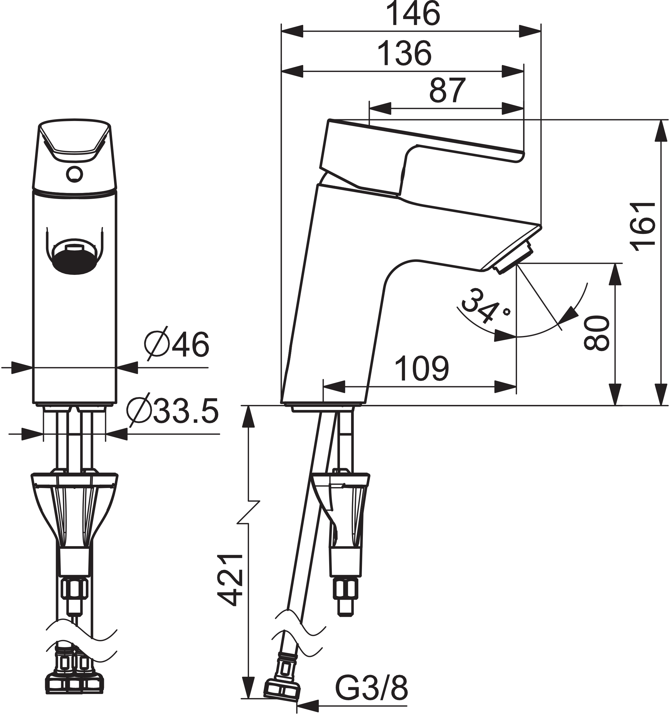 Tvättställsblandare med en användarvänlig spak som är enkel att greppa.