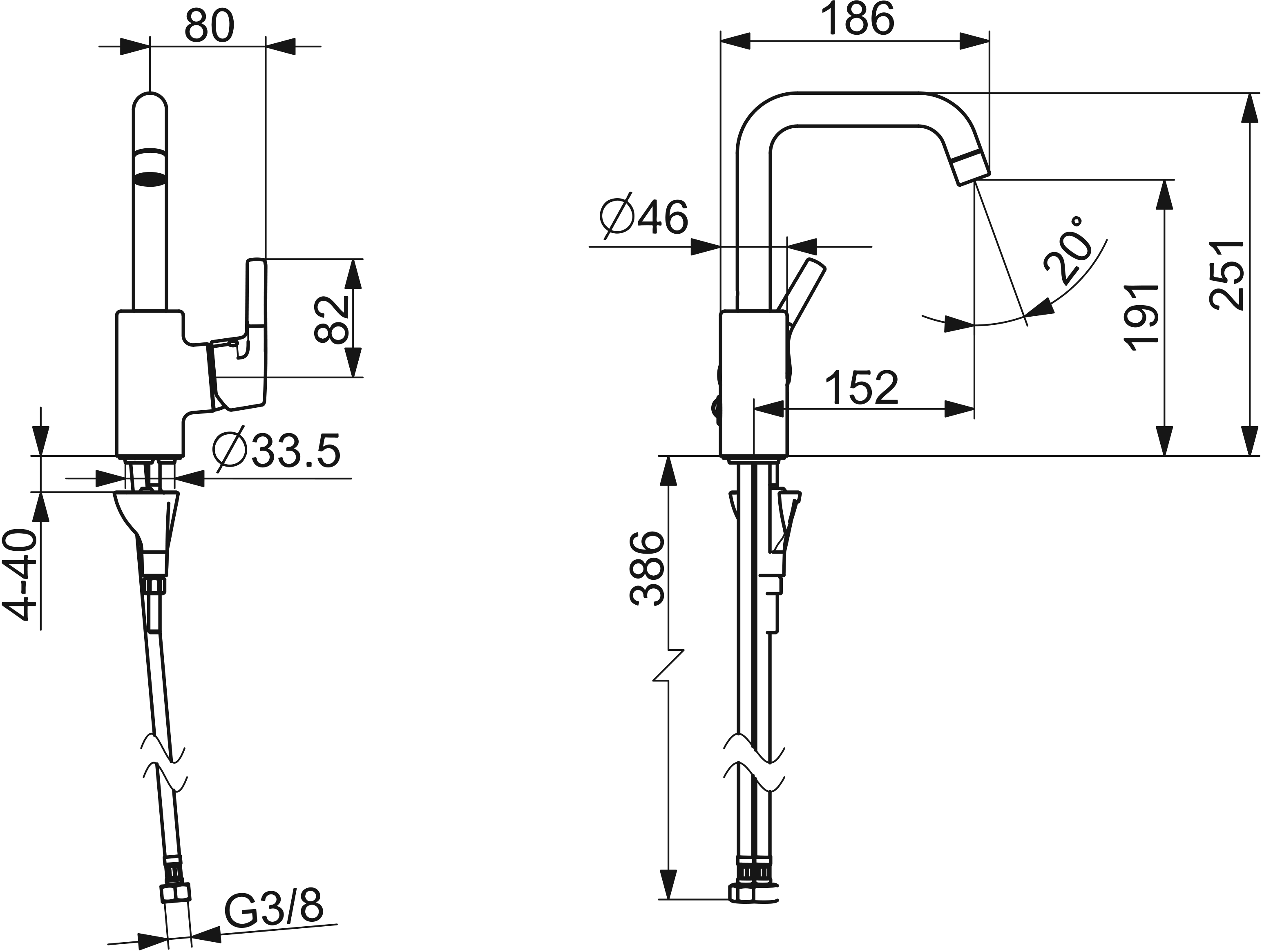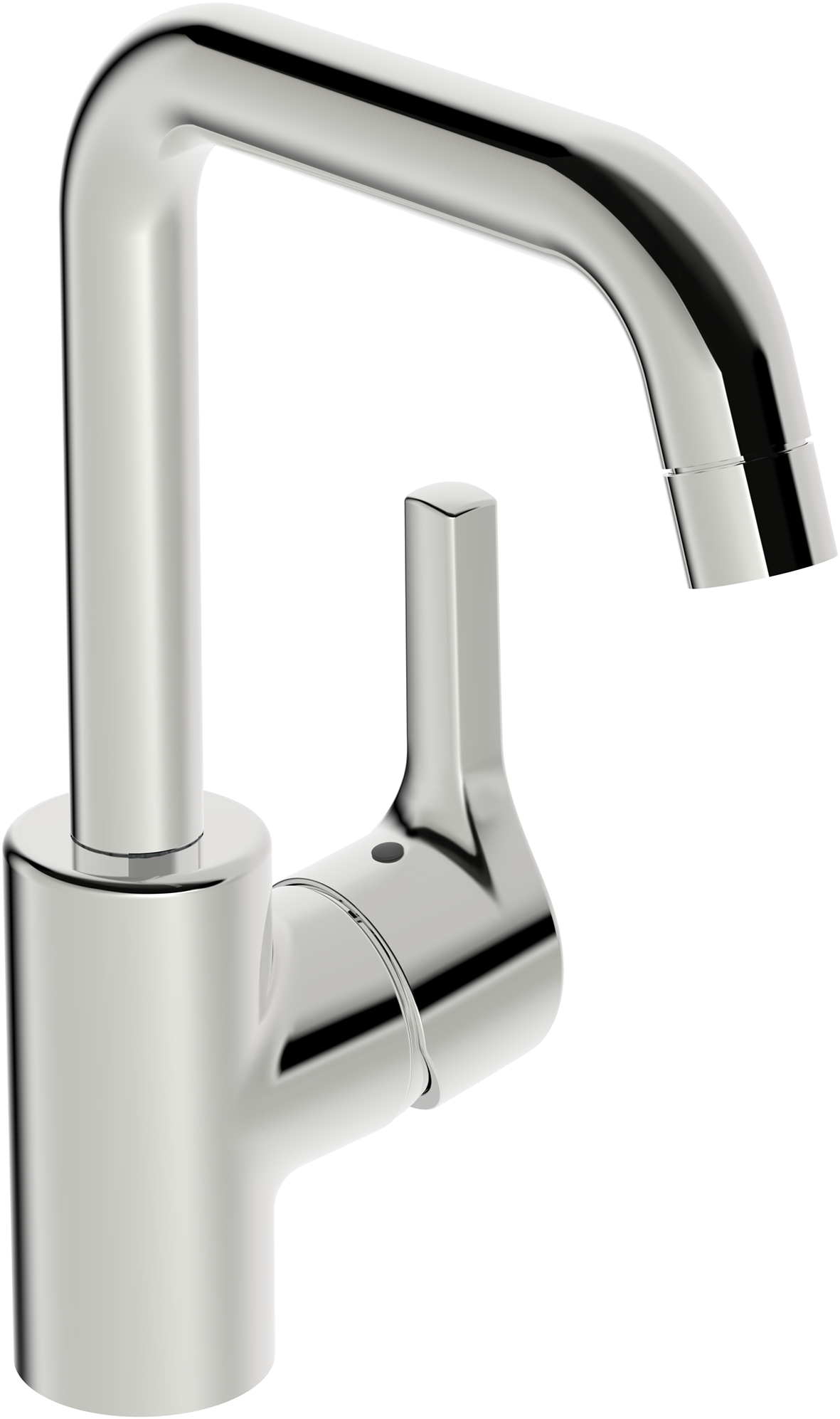 Tvättställsblandare med sidospak, hög svängbar utloppspip. Inbyggd spärr för begränsning av temperatur och flöde via kassett 3.5. Flödeskontroll 6.0 l/min. F=flexibel anslutning. G3/8" inv.G