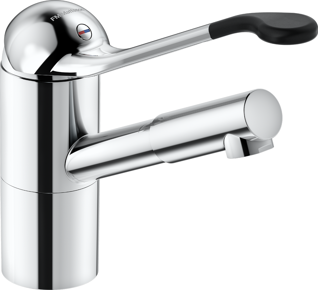 Tvättställsblandaren Care är tillverkad i en blyfri mässing och har en design med stort fokus på tillgänglighet och anpassning. Blandarens förlängda spak är ytterst belagd med ett greppvänligt material i kontrastfärg samt en förlängd pip för ökad tillgänglighet. Detta tillsammans med pipen som både är svängbar i sidled och vars yttre del går att vrida i sidled gör att du har en blandare som enkelt går att anpassa utifrån användarens behov. Blandare har även FM Mattssons kända energieffektiva lösningar samt funktioner som kallstart och mjukstängning.
