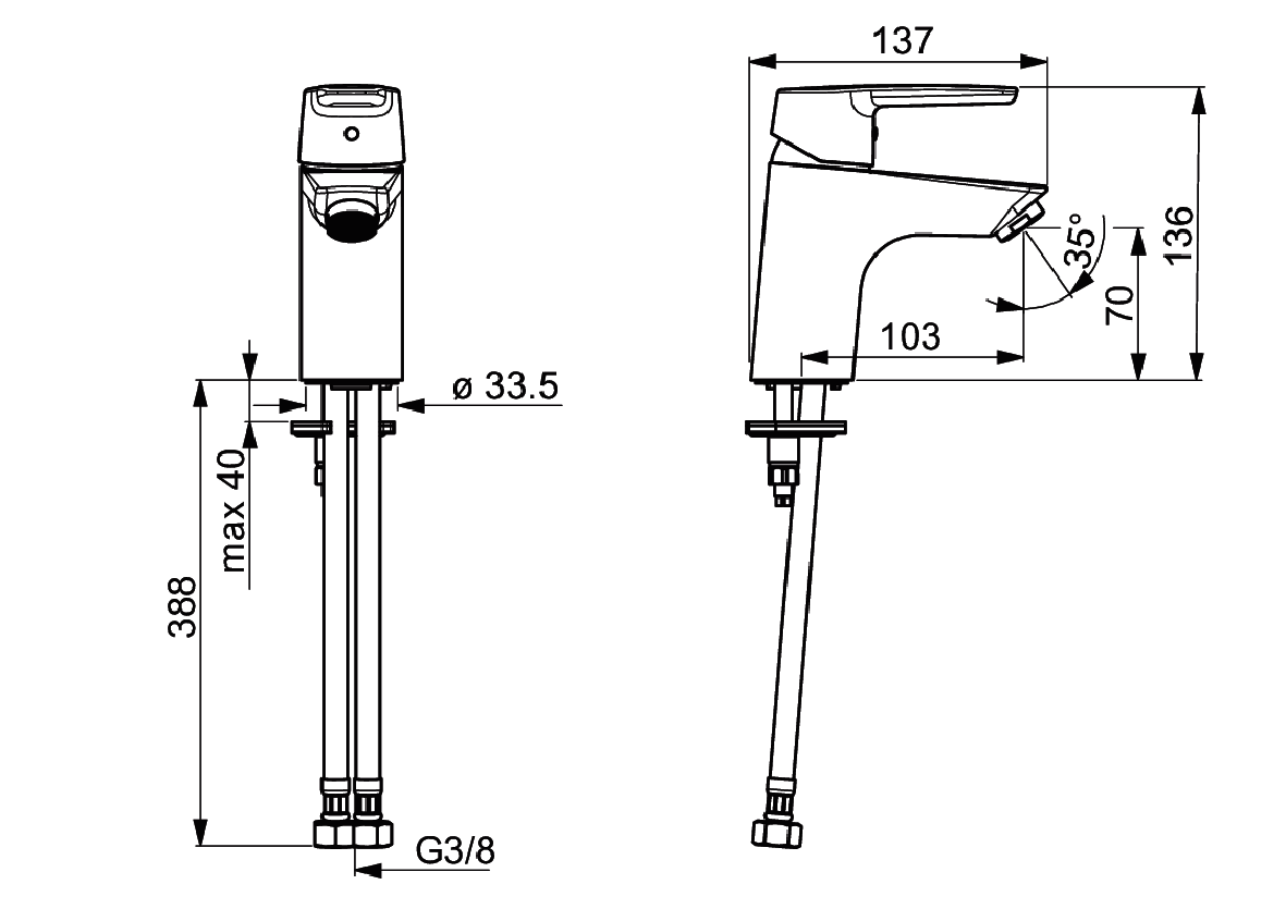 Matt svart tvättställsblandare med fast utloppspip och strålsamlare. Inbyggd spärr för begränsning av temperatur och flöde. Kallstartskassett, flödeskontroll med flöde upp till 5.0 l/min. F=flexibel anslutning. G3/8" inv.G. Energiklass A. Produkten finns bedömd hos Byggvarubedömningen. Tillverkad i 4MS godkänd mässingslegering. Produkten har EJ någon begränsning på varmvattensidan och klarar BBR:s krav på tappvattentemperatur utan ytterligare åtgärd.