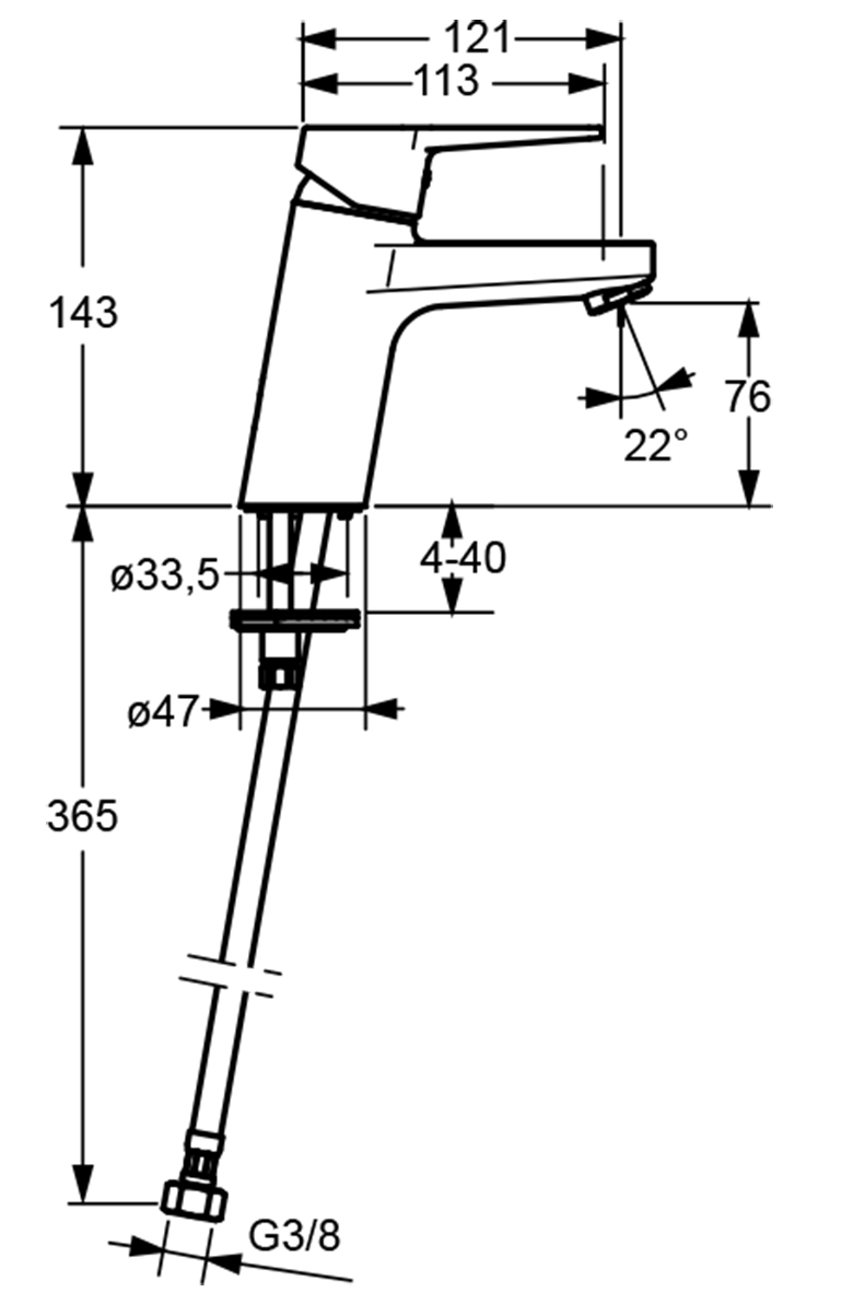 F=flexibel anslutning. G3/8" inv.G.
