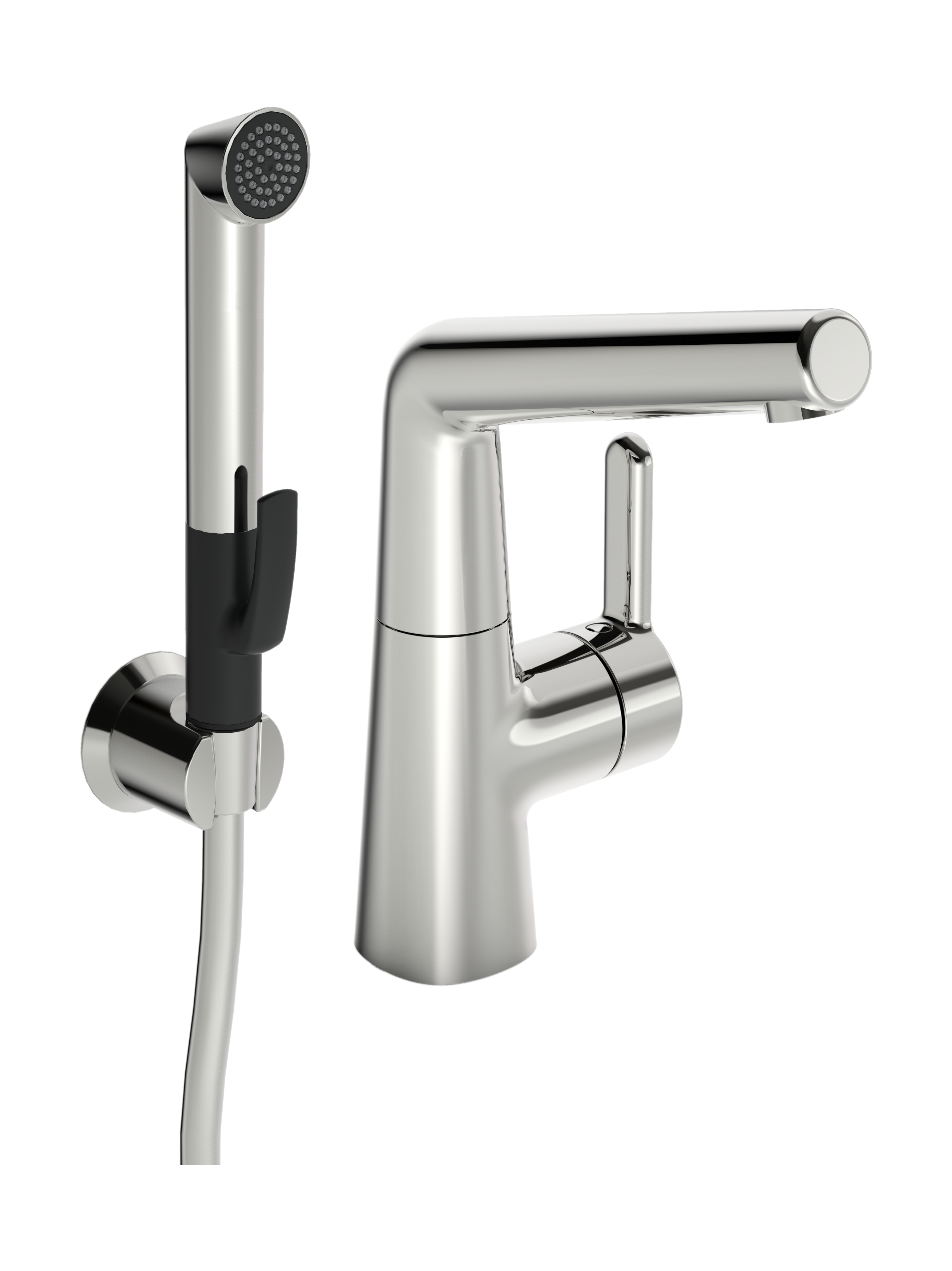 Tvättställsblandare med sidspak, svängbar utloppspip och Bidetta handdusch. Pipens svängradie är förinställd på 120° (kan begränsas till 0° eller 60°). Duschslang 1.6 m och väggfäste ingår. Inbyggd spärr för begränsning av temperatur och flöde. F = flexibel anslutning. 6l/min - 300kPa. Oras patenterade infästningssystem 3S - för enkel och snabb installation.
