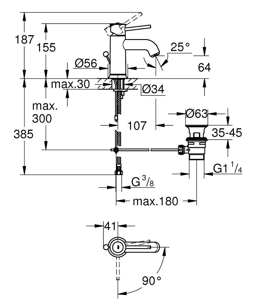 Start Classic tvättställsblandare ettgrepp, DN 15 i storlek S. Tvättställsblandaren är försedd metallgrepp och GROHE LongLife ES 28 keramisk insats med energisparande funktion vid kallstart, bottenventil 1 1/4" och GROHE EcoJoy strålsamlare (5,7 l/min). Rengöringen är enkel tack vare den kromade GROHE StarLight-ytbehandlingen och installationen är smidigt med hjälp av system för snabb montering, etthålsmontage samt flexibla anslutningsslangar.