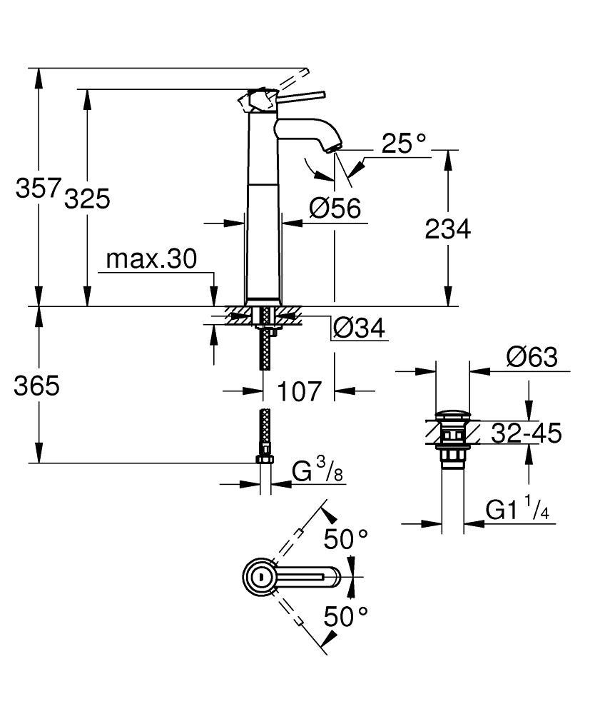 Tvättställsblandare ettgrepp, DN 15 XL-Size