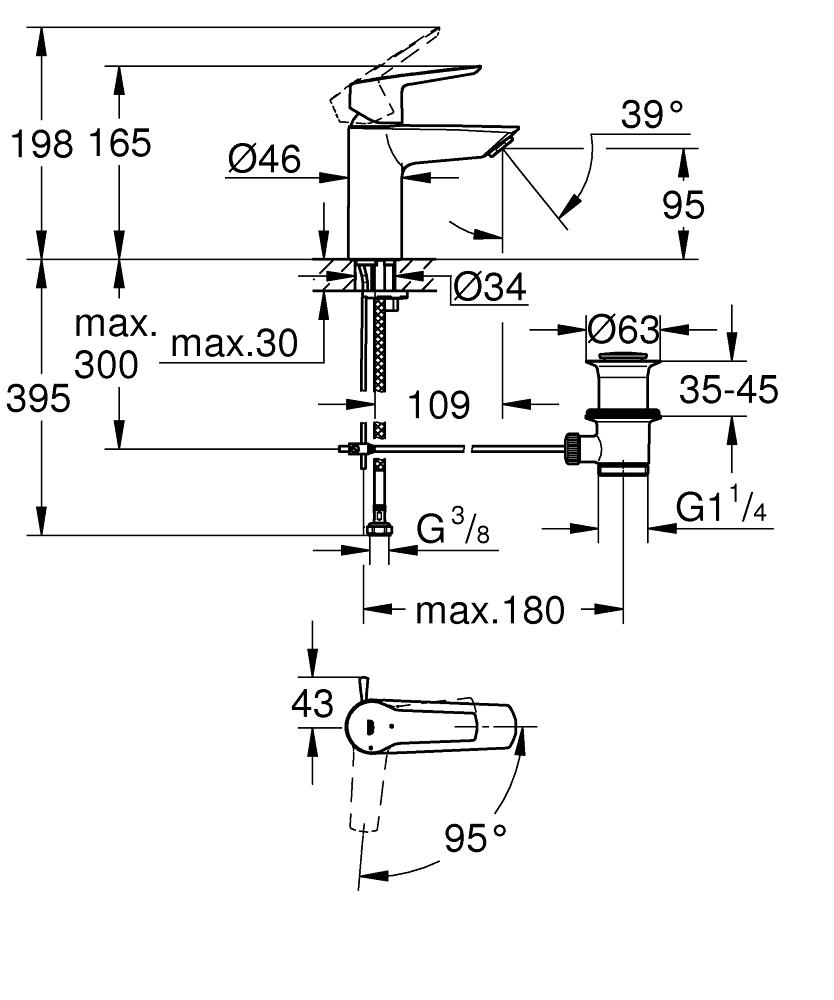 Start, Tvättställsblandare ettgrepp, DN 15 S-Size, Krom, Etthålsmontage